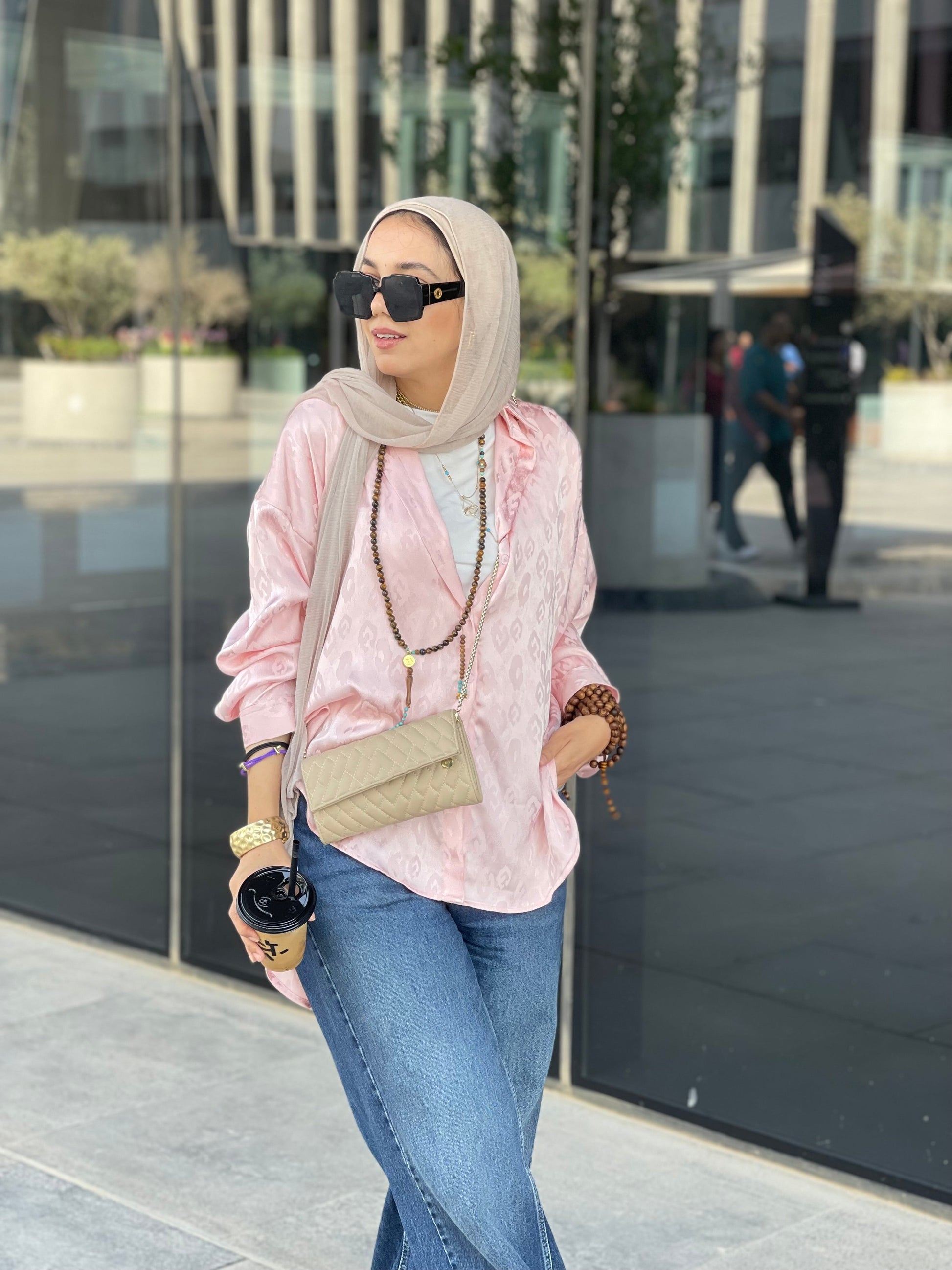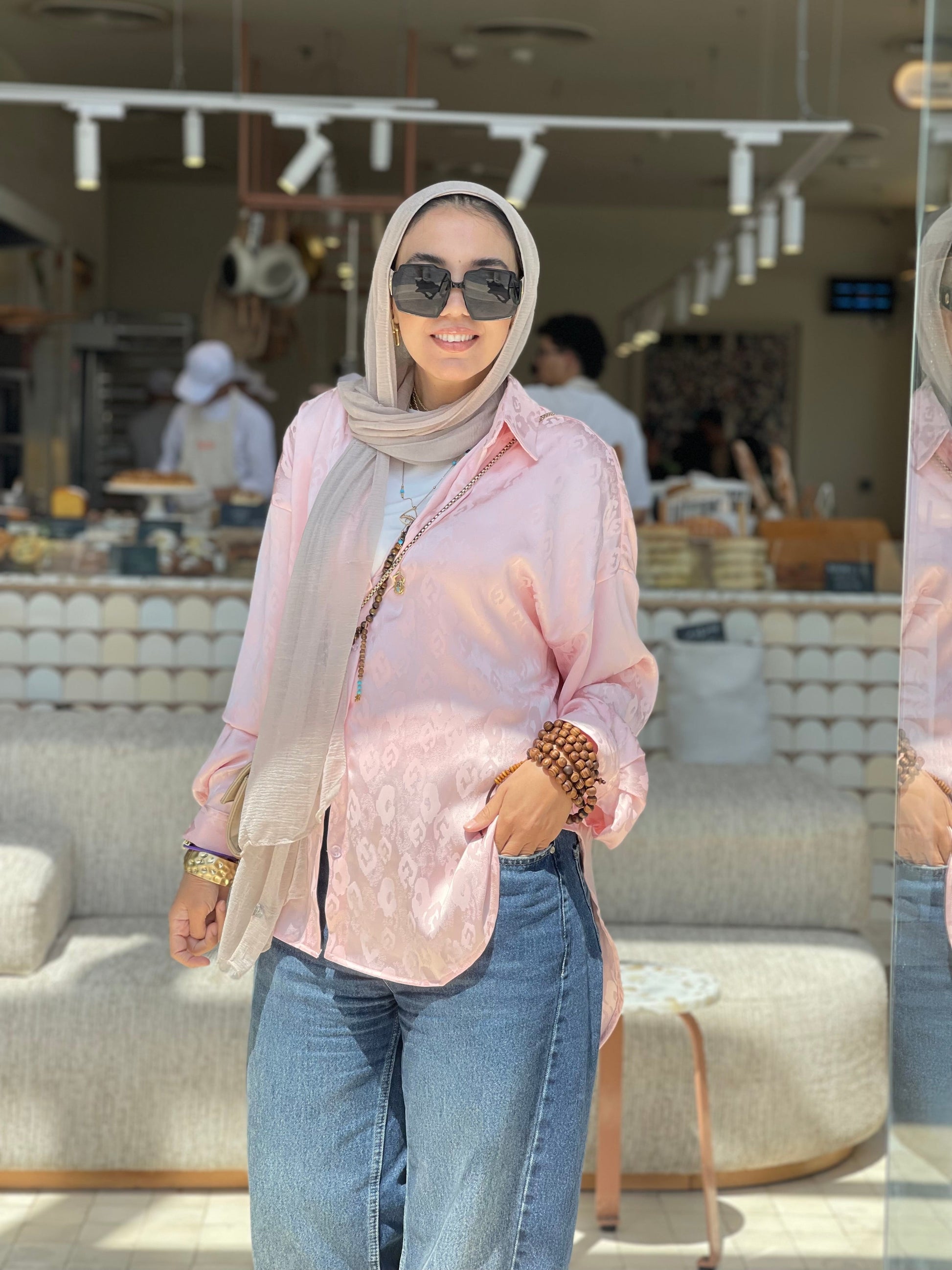 Baby pink Jacquard satin chemise