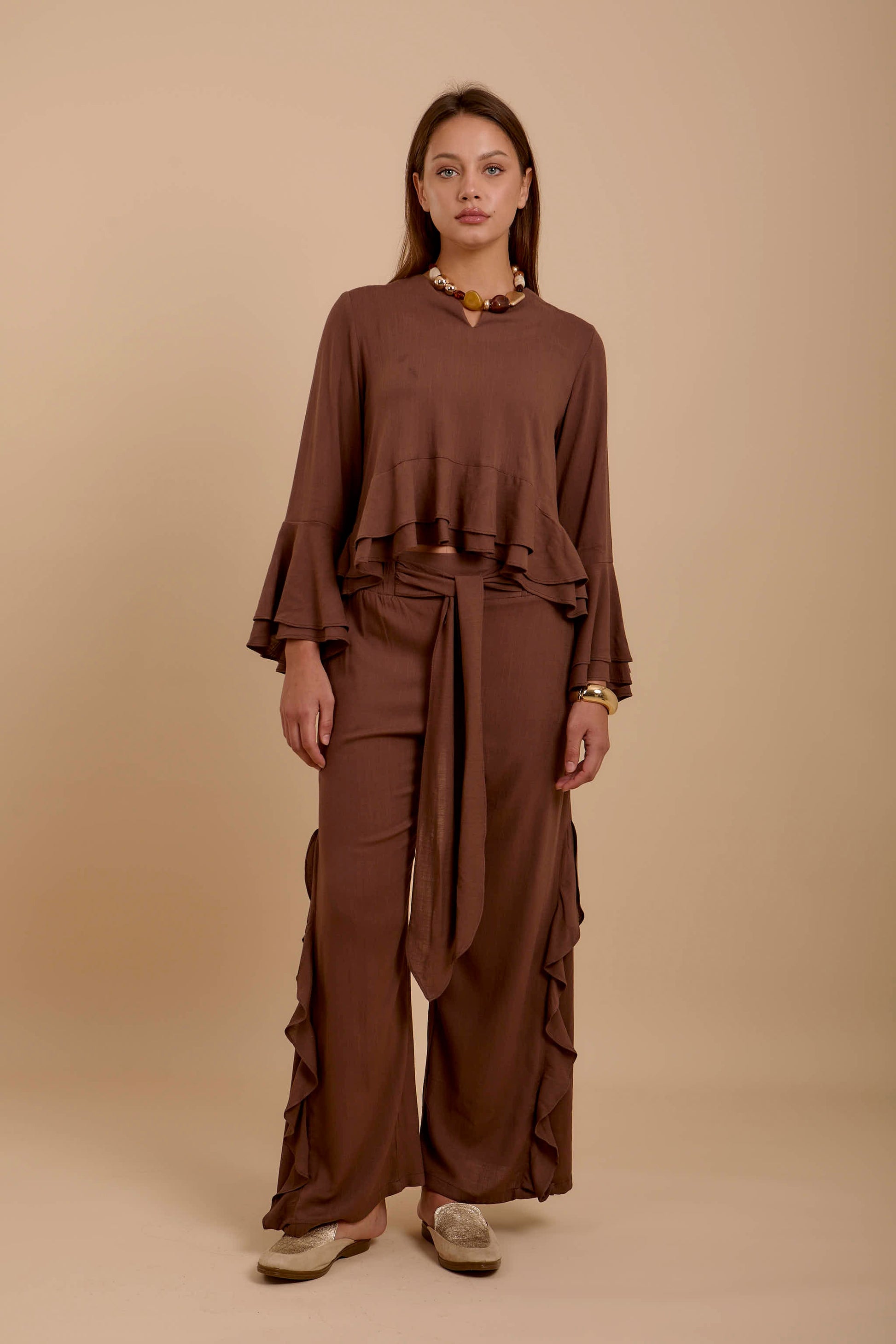 Brown Boho Long sleeve Top