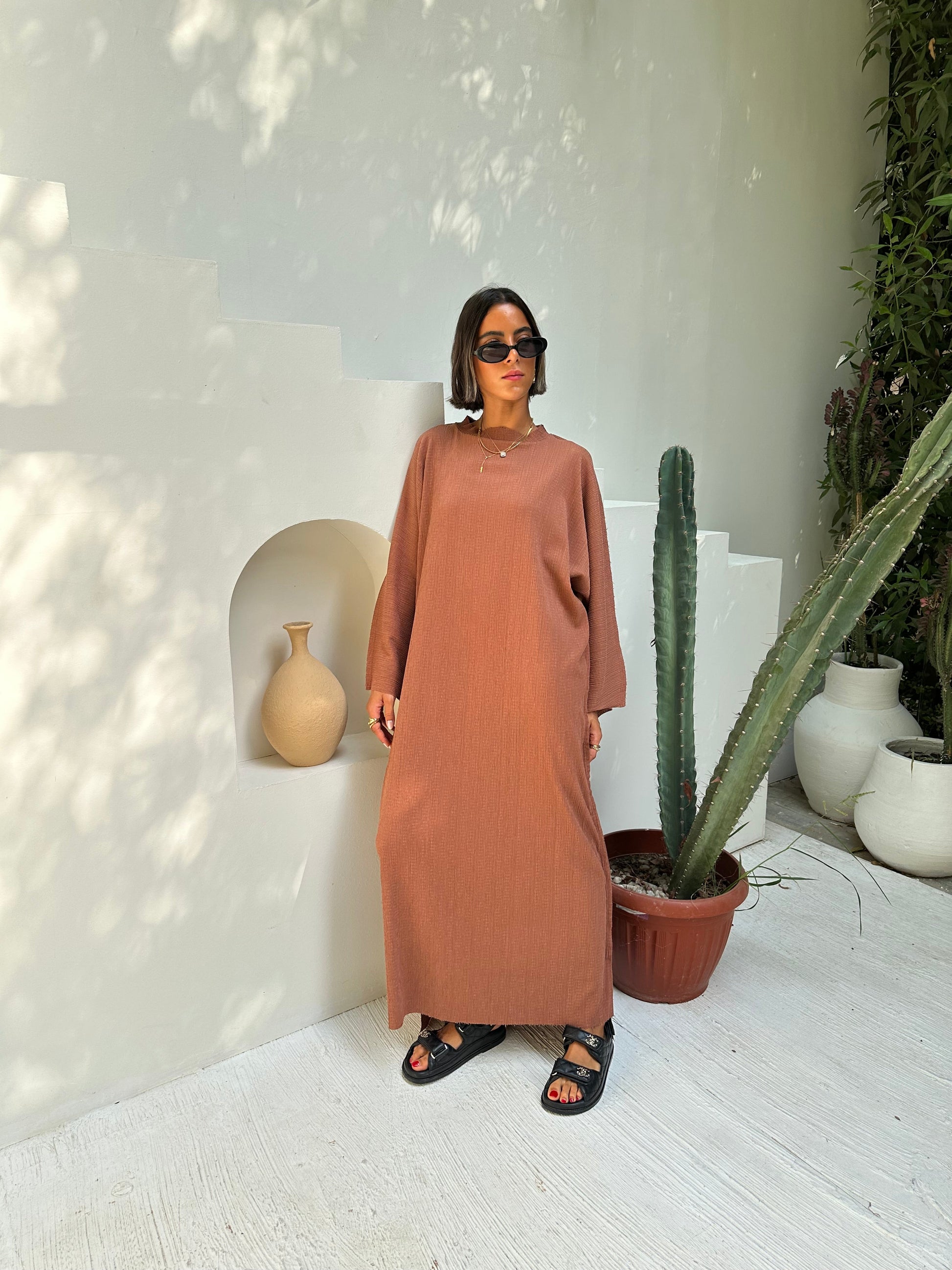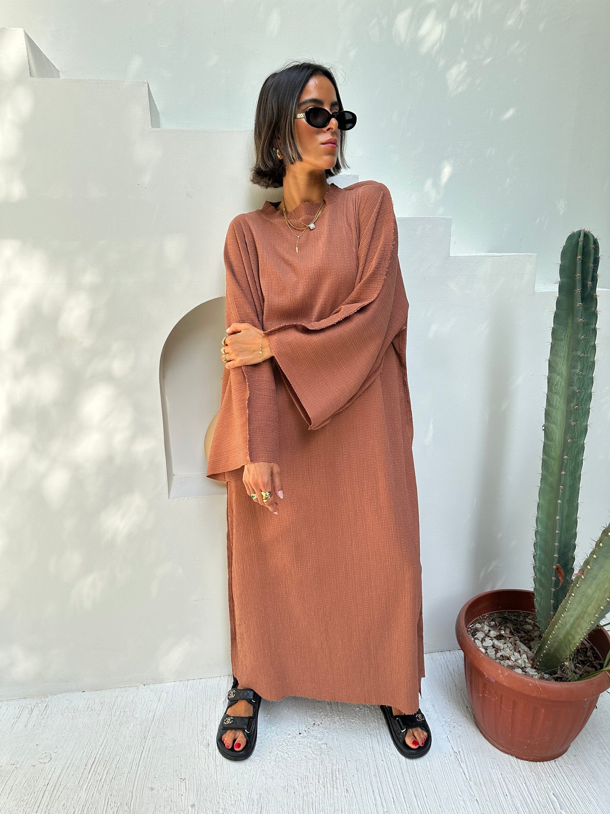 Crinkled Sundress - Camel Brown