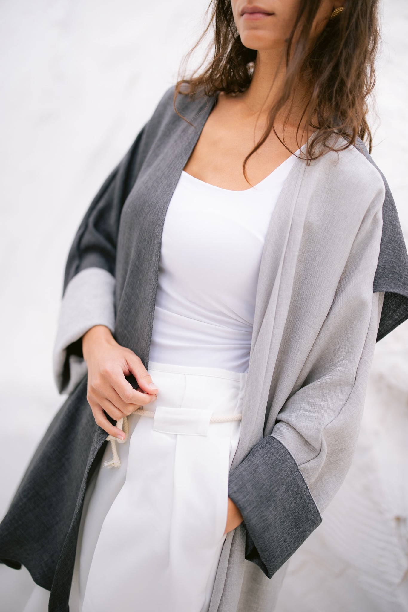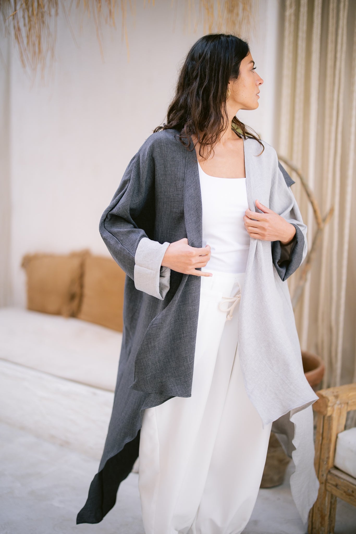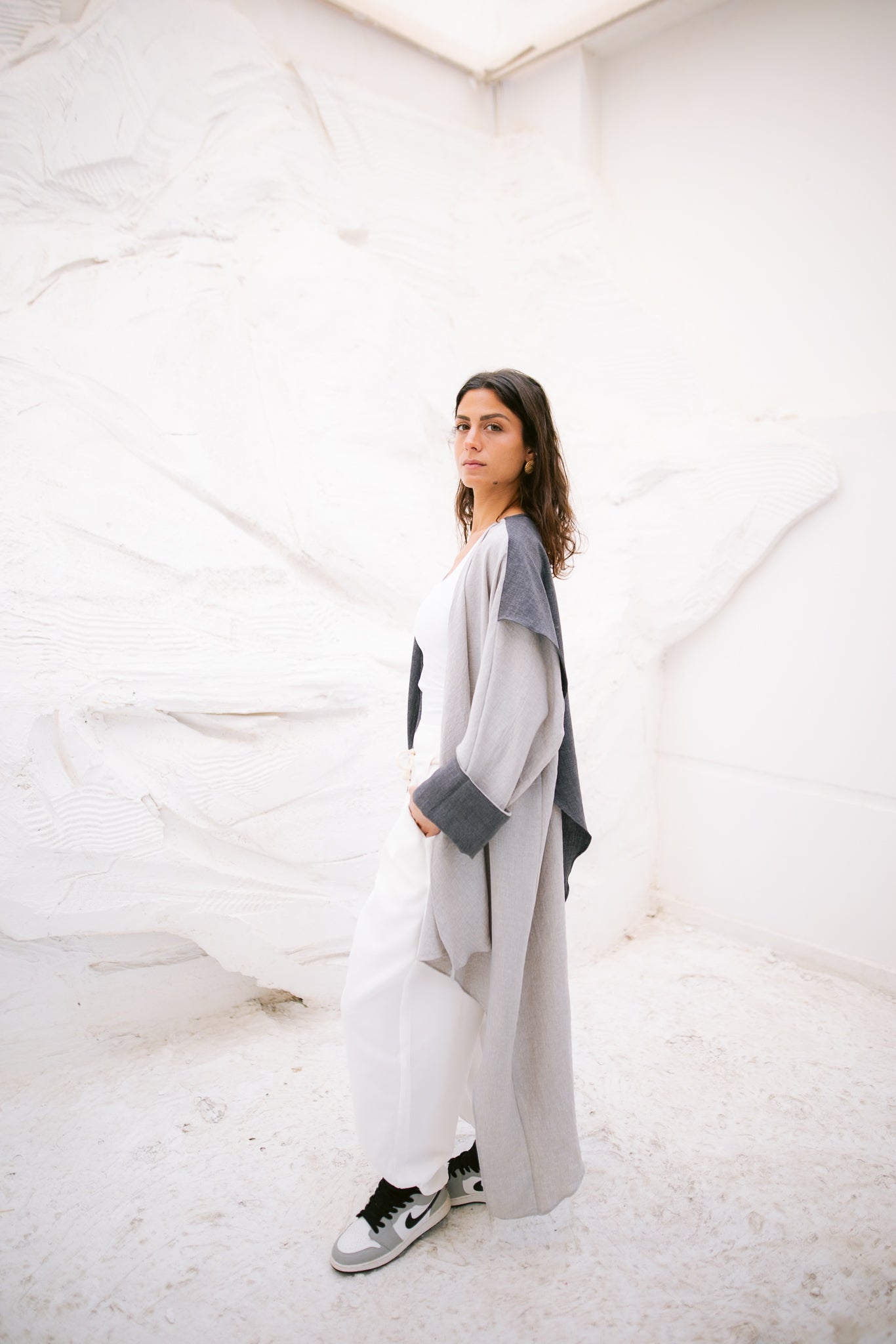 Dual Flowy Kimono - Light Grey/Dark Grey