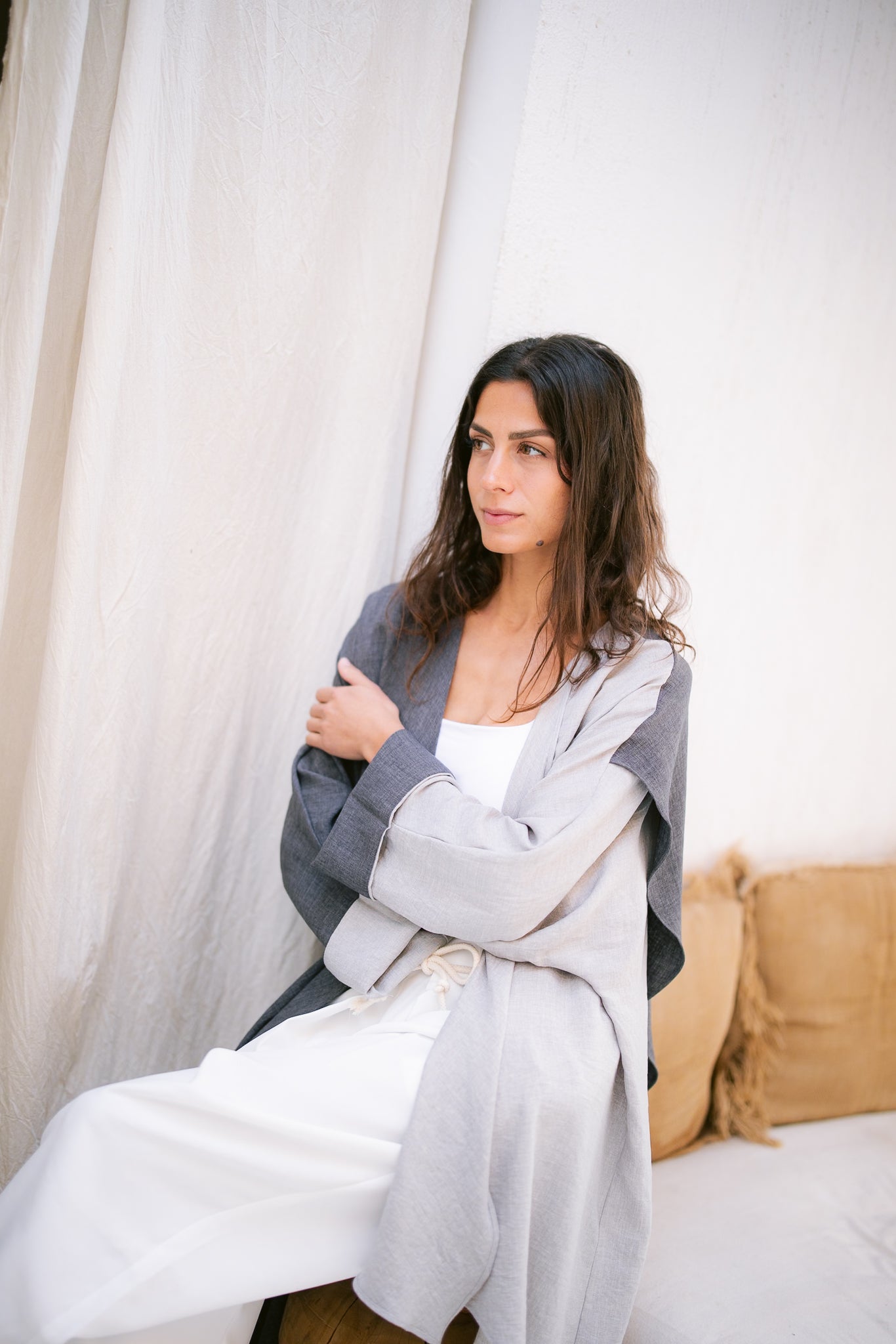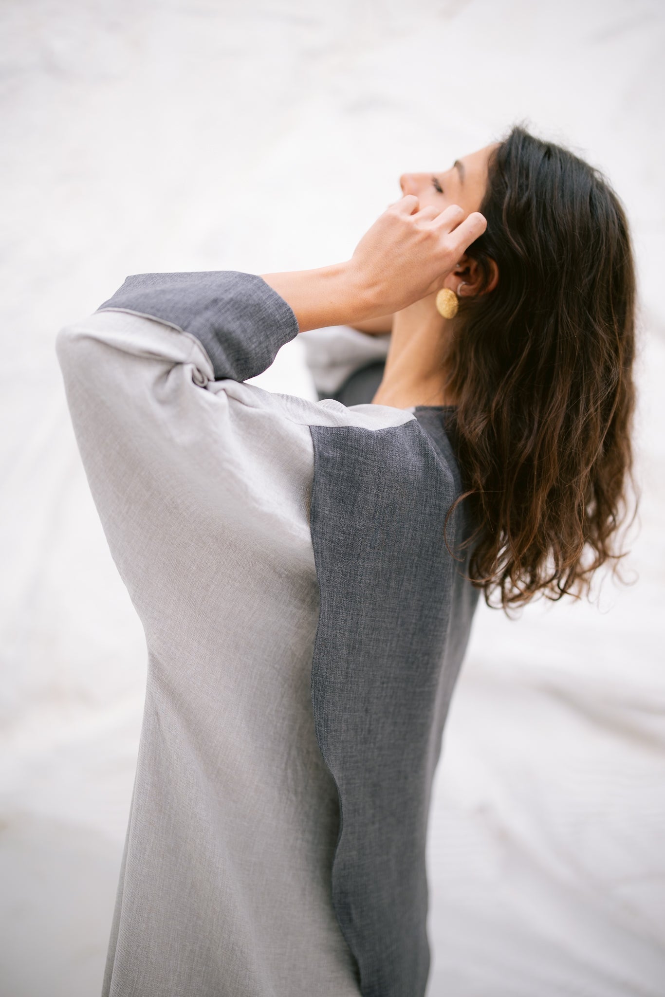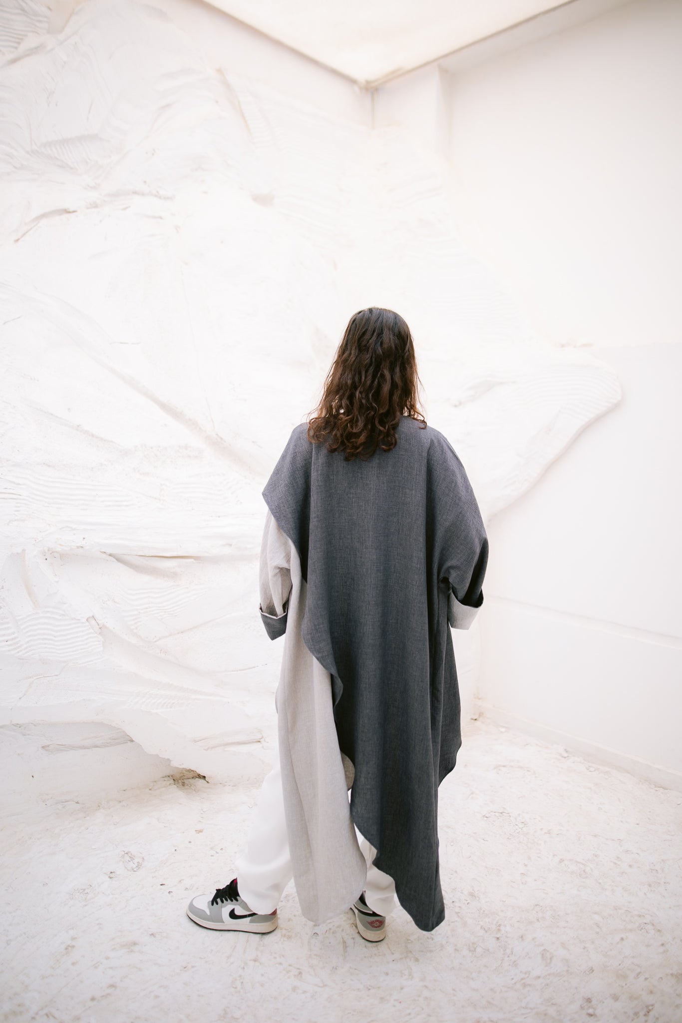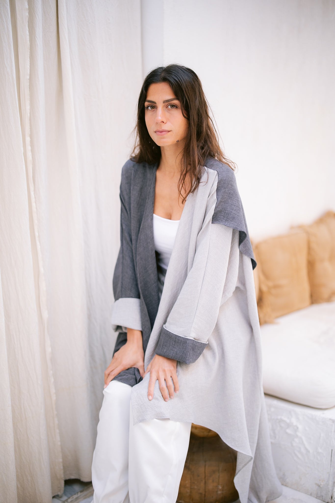Dual Flowy Kimono - Light Grey/Dark Grey