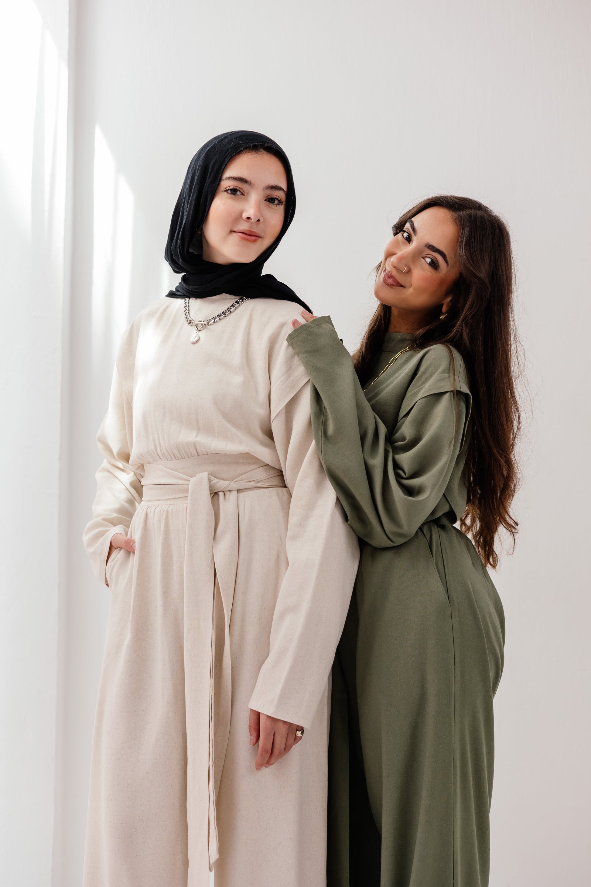 Dune Linen Jumpsuit – Inspired by the soft, earthy tones of the desert, the Dune Linen Jumpsuit is the perfect blend of elegance and effortless style. Crafted from breathable linen, it features a fitted waist that flatters the silhouette, complemented by a long attached belt for added definition. The two functional pockets add a practical touch, making it as versatile as it is stylish. Whether dressed up with heels or worn casually with sandals, the Dune Linen Jumpsuit is a timeless wardrobe staple for any season.