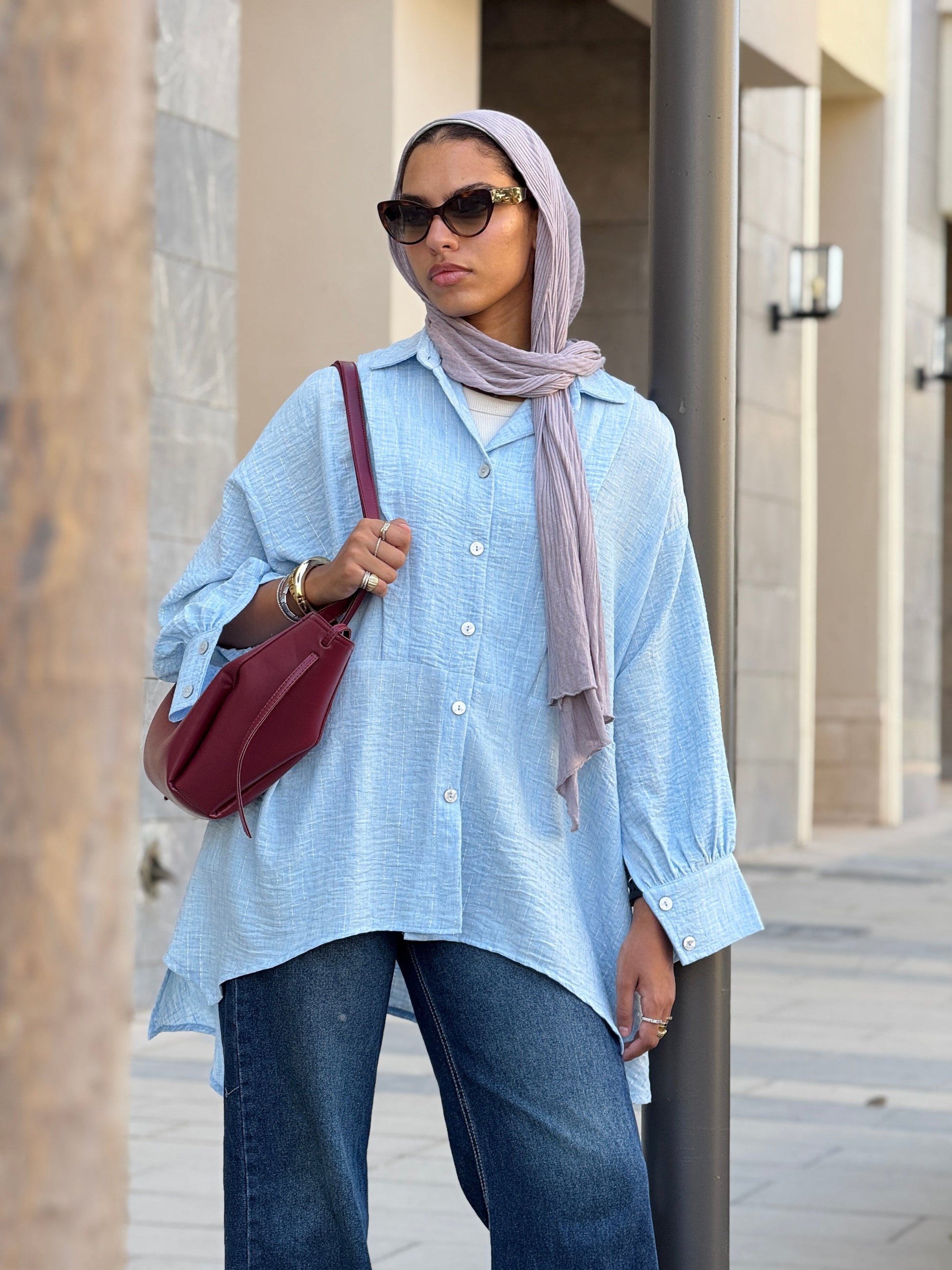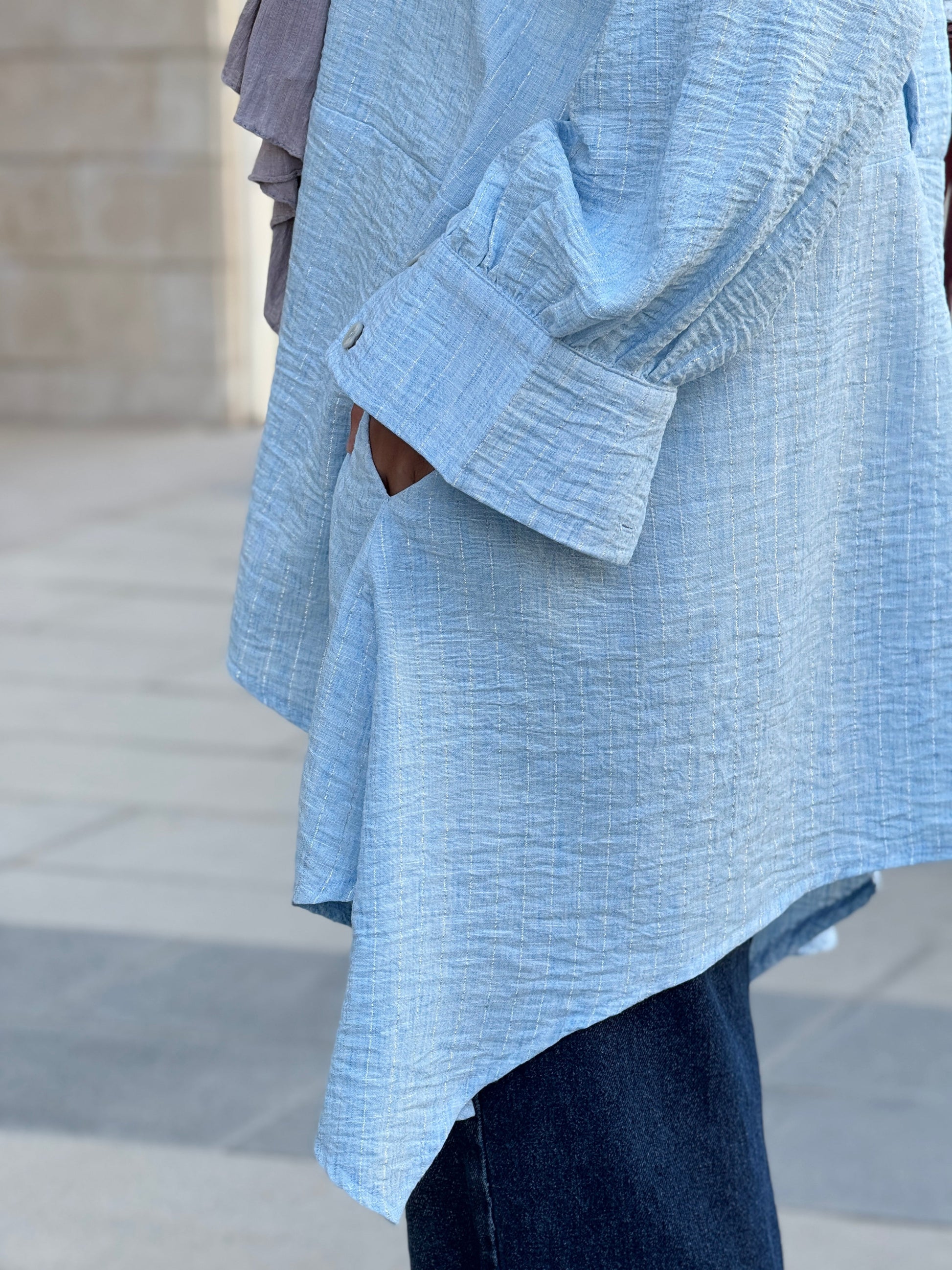 ✨ Overall, it’s a modern, airy, and effortlessly elegant blouse, perfect for casual chic outfits, especially paired with jeans (as in the photo) or wide-leg trousers for a more elevated look.