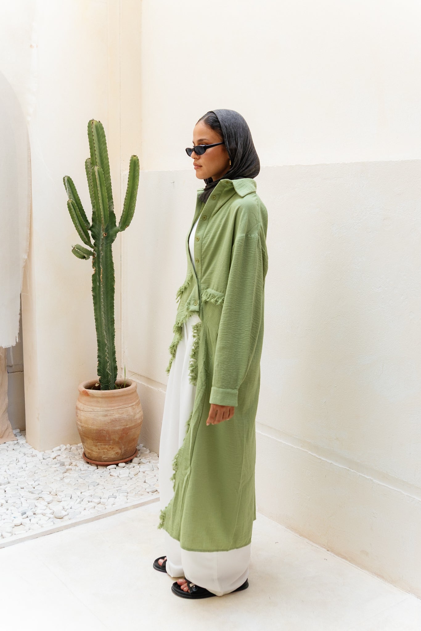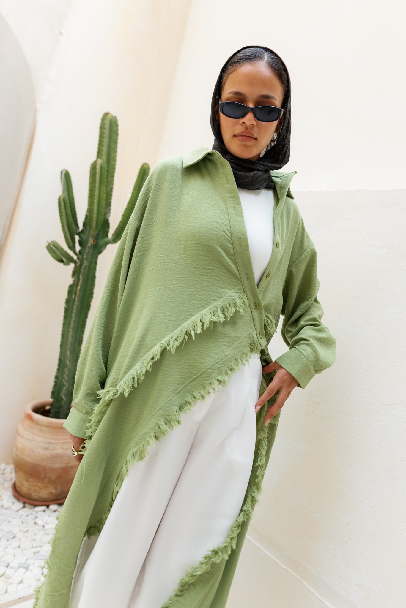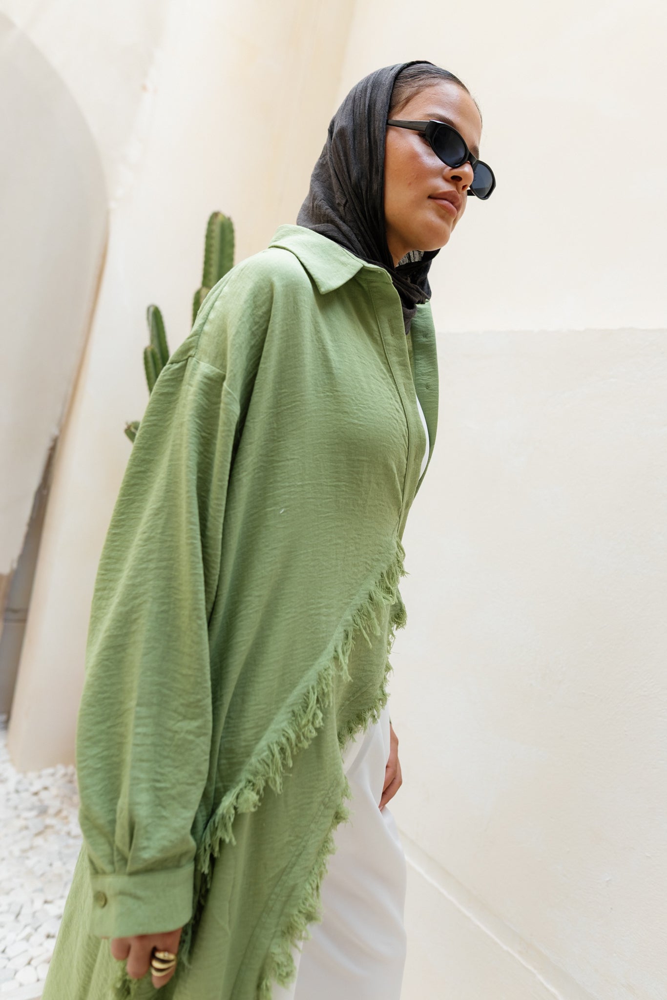Fringed Sided Shirt in Olive