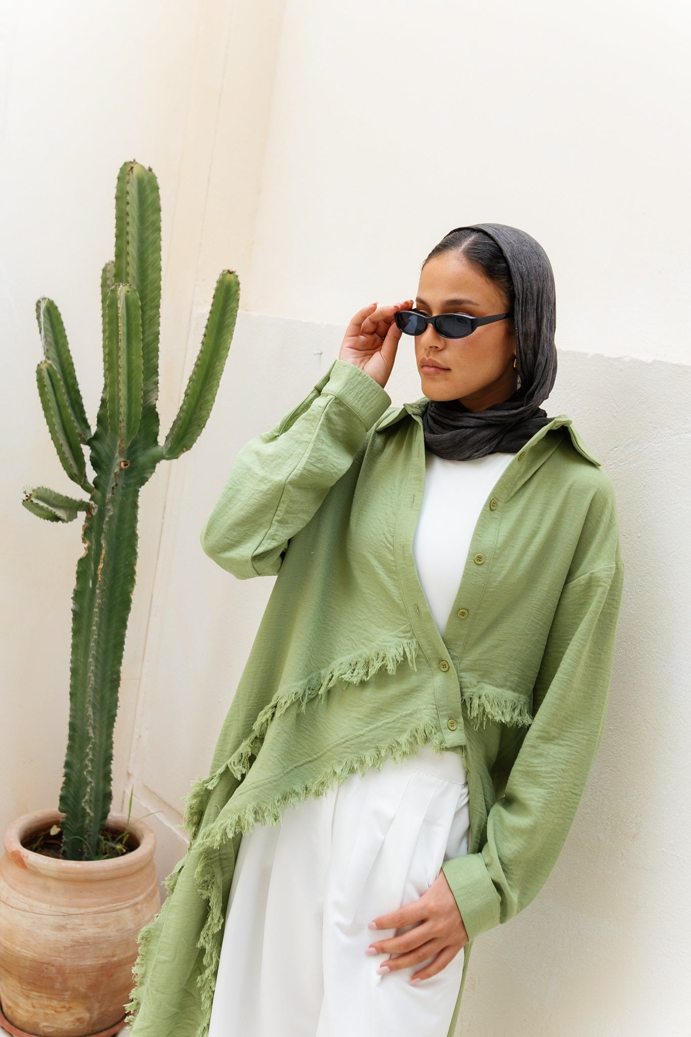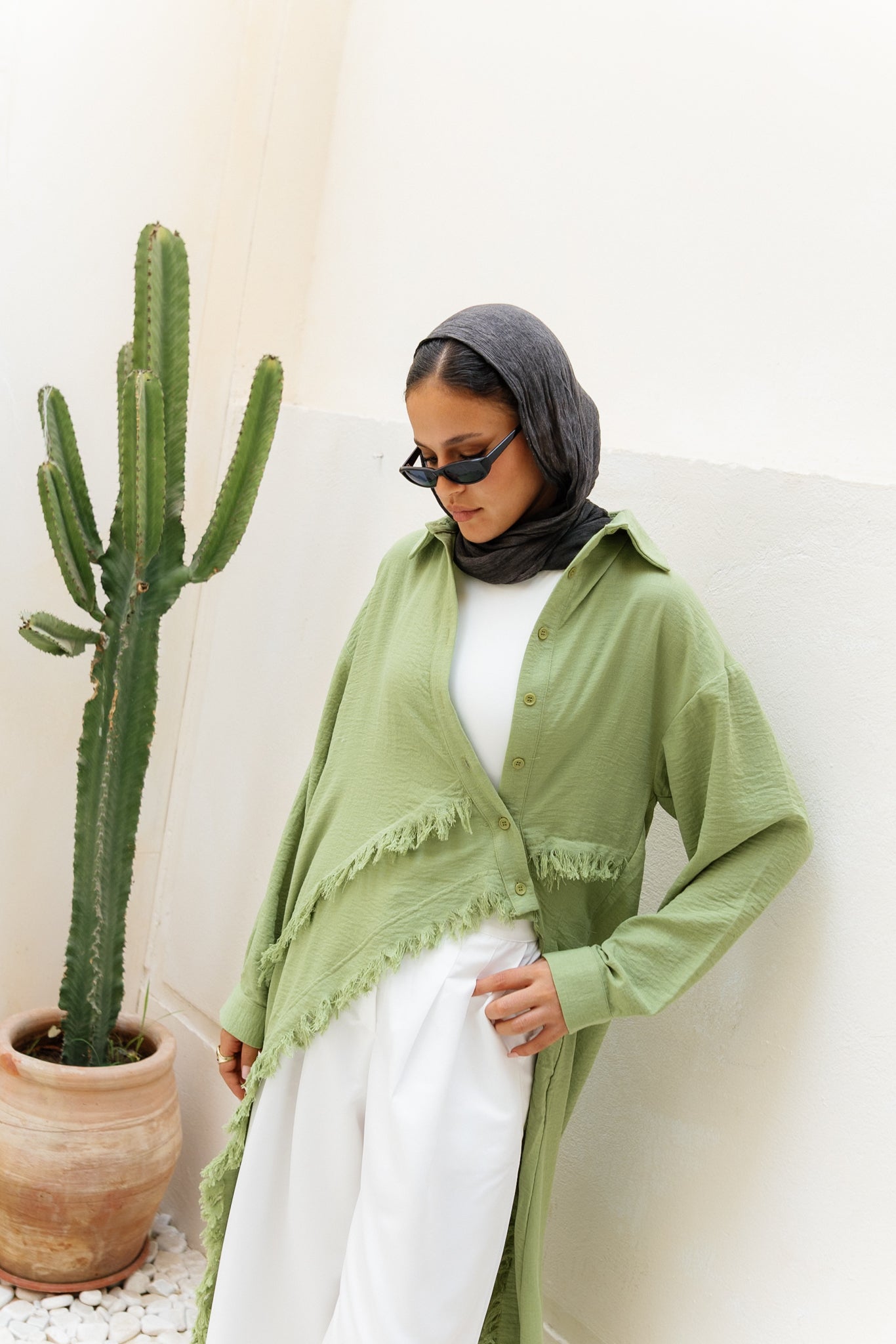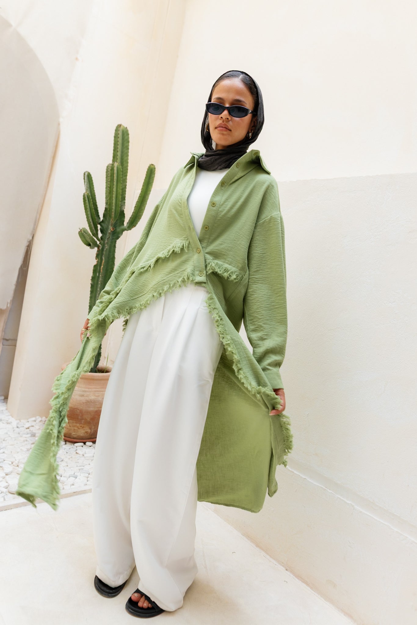 Fringed Sided Shirt in Olive
