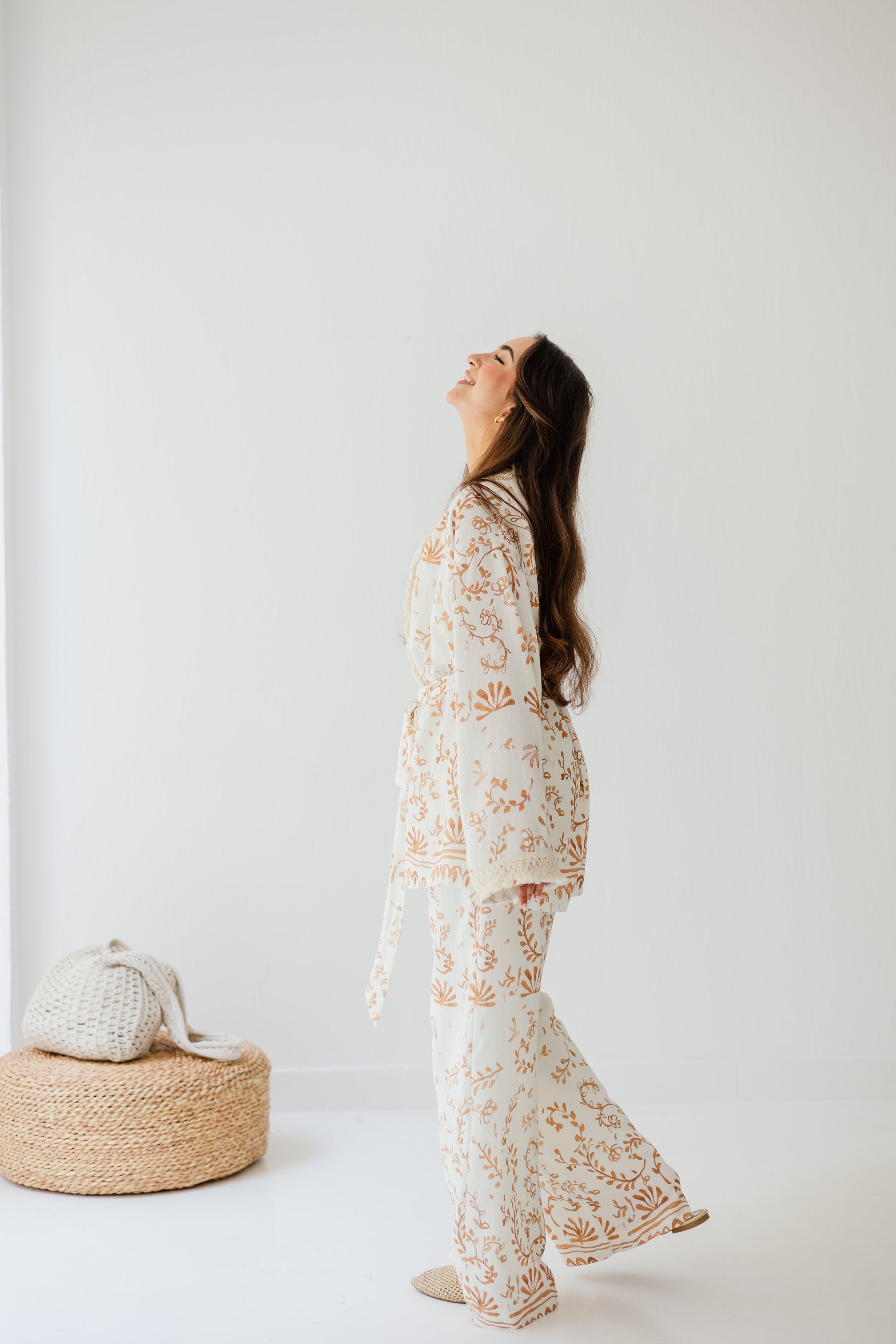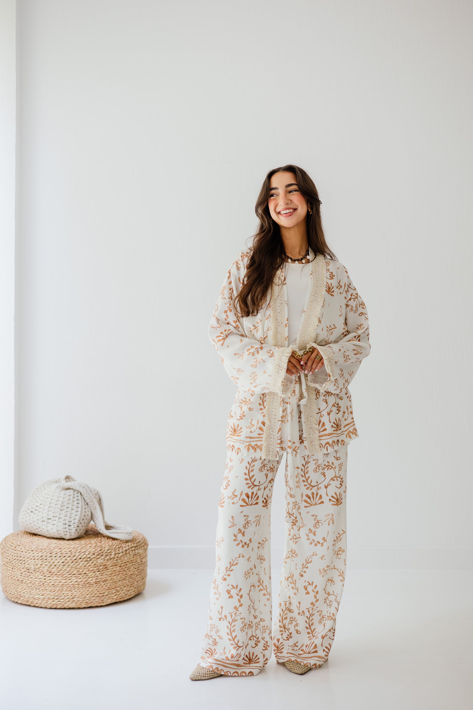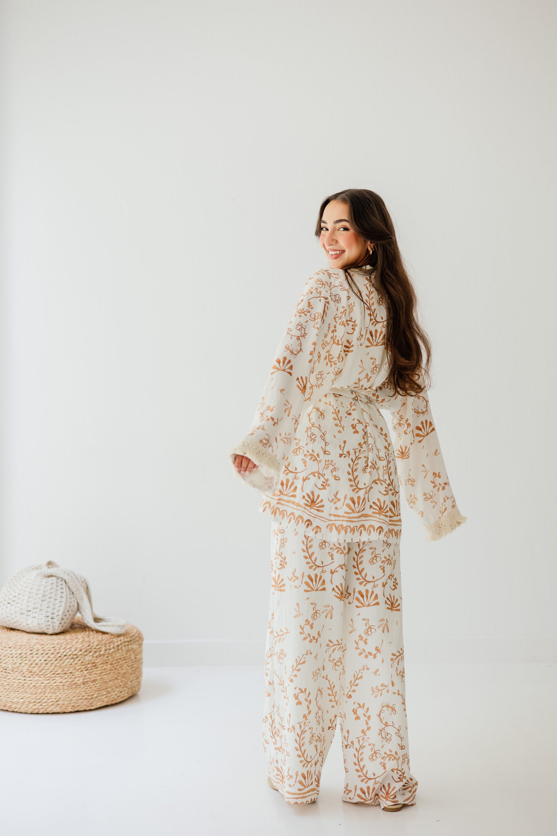 A breezy two-piece inspired by nature’s charm. Featuring delicate prints on soft, flowy fabric — perfect for sunny days, casual outings, or laid-back elegance.