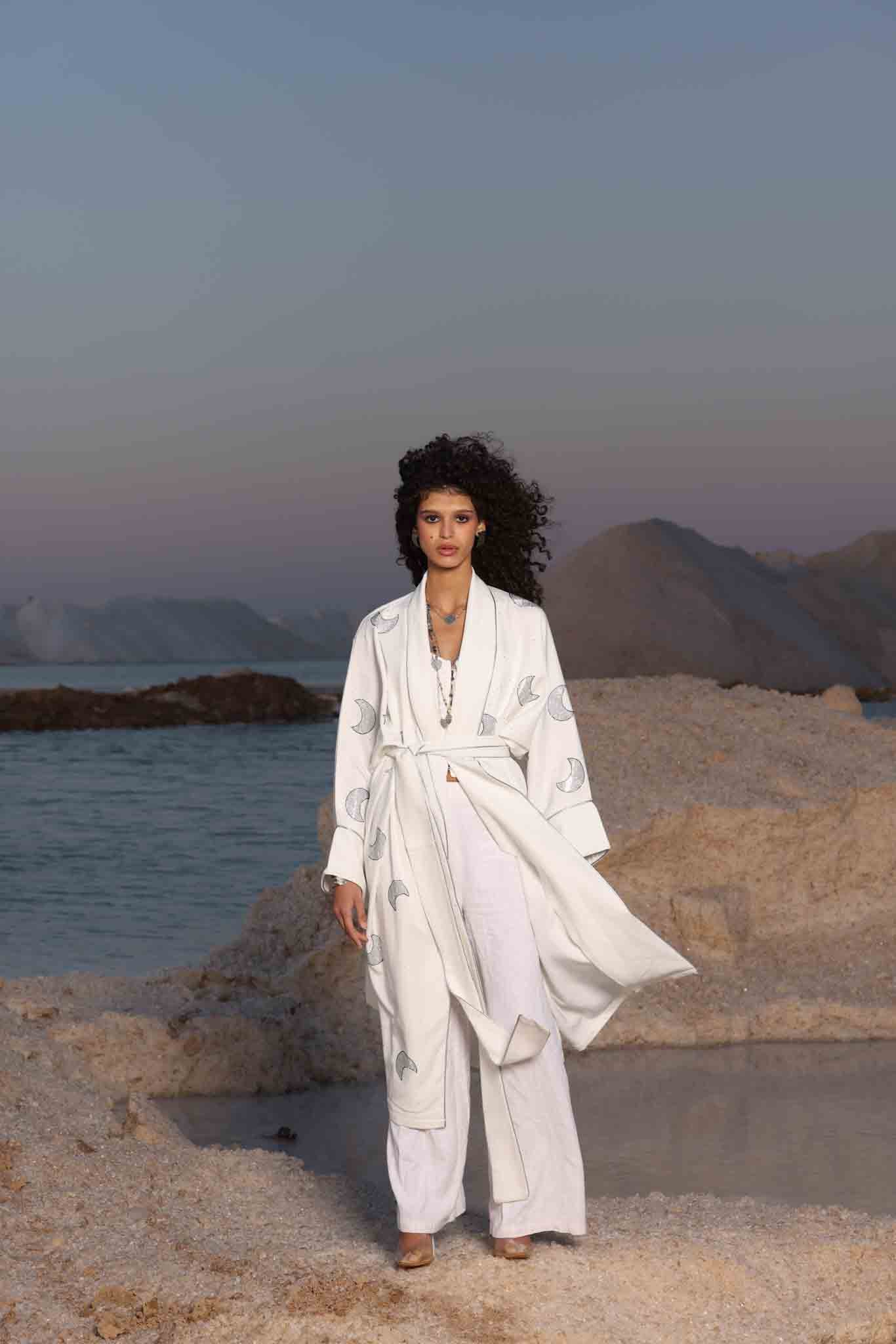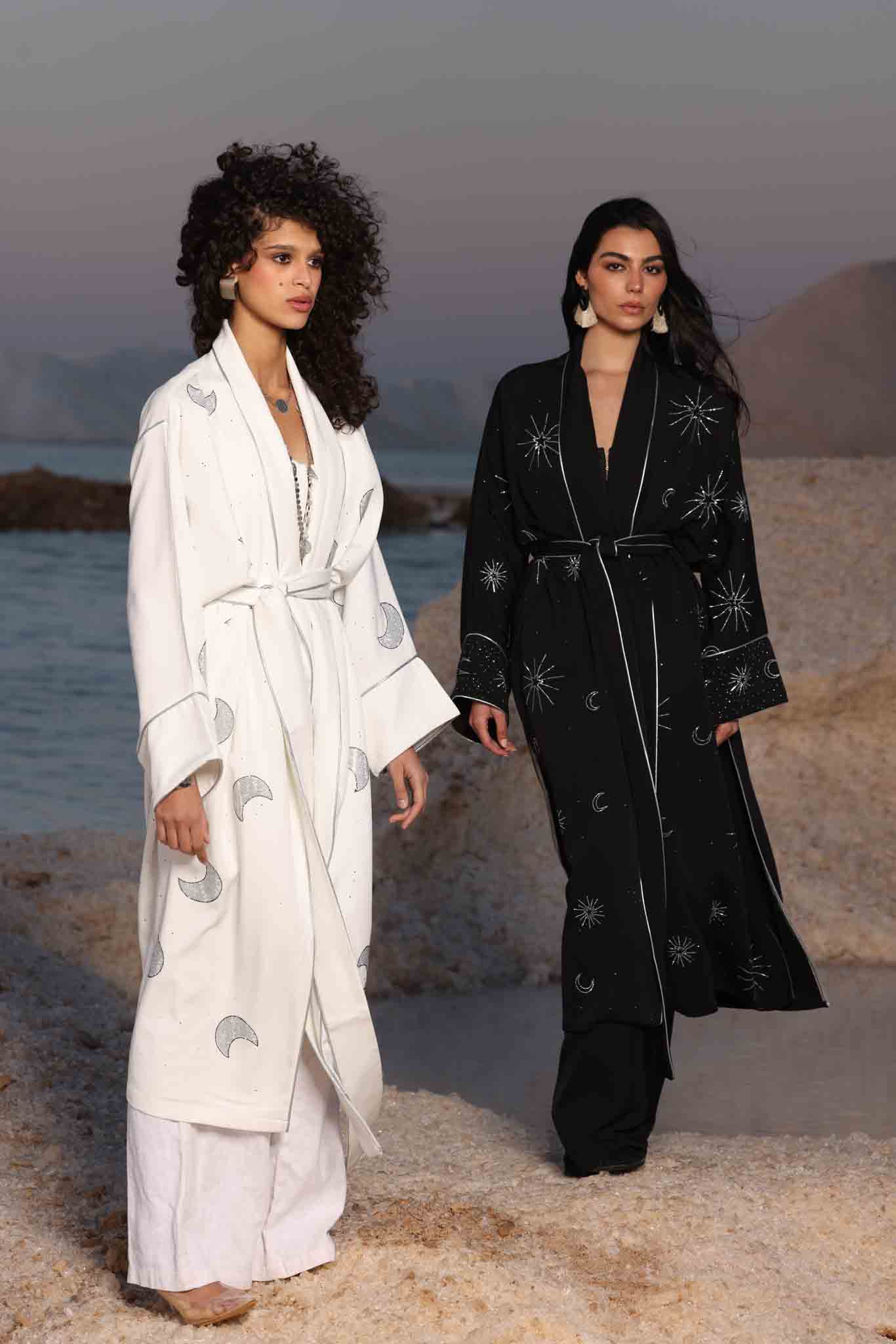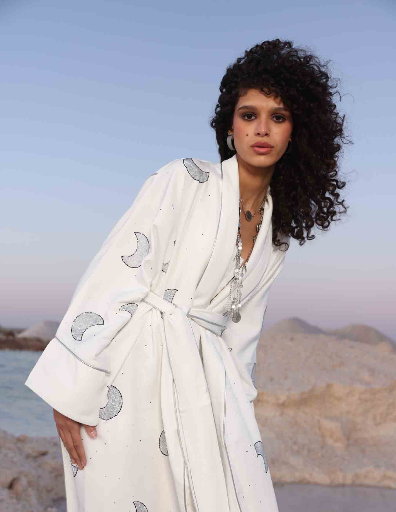 Introducing NABA - the embodiment of elegance and luxury. Our Ramadan Crescent Kaftan exudes sophistication with its intricate design and flowing silhouette. Embrace the spirit of the holy month in style and indulge in the ultimate comfort and exclusivity of NABA.