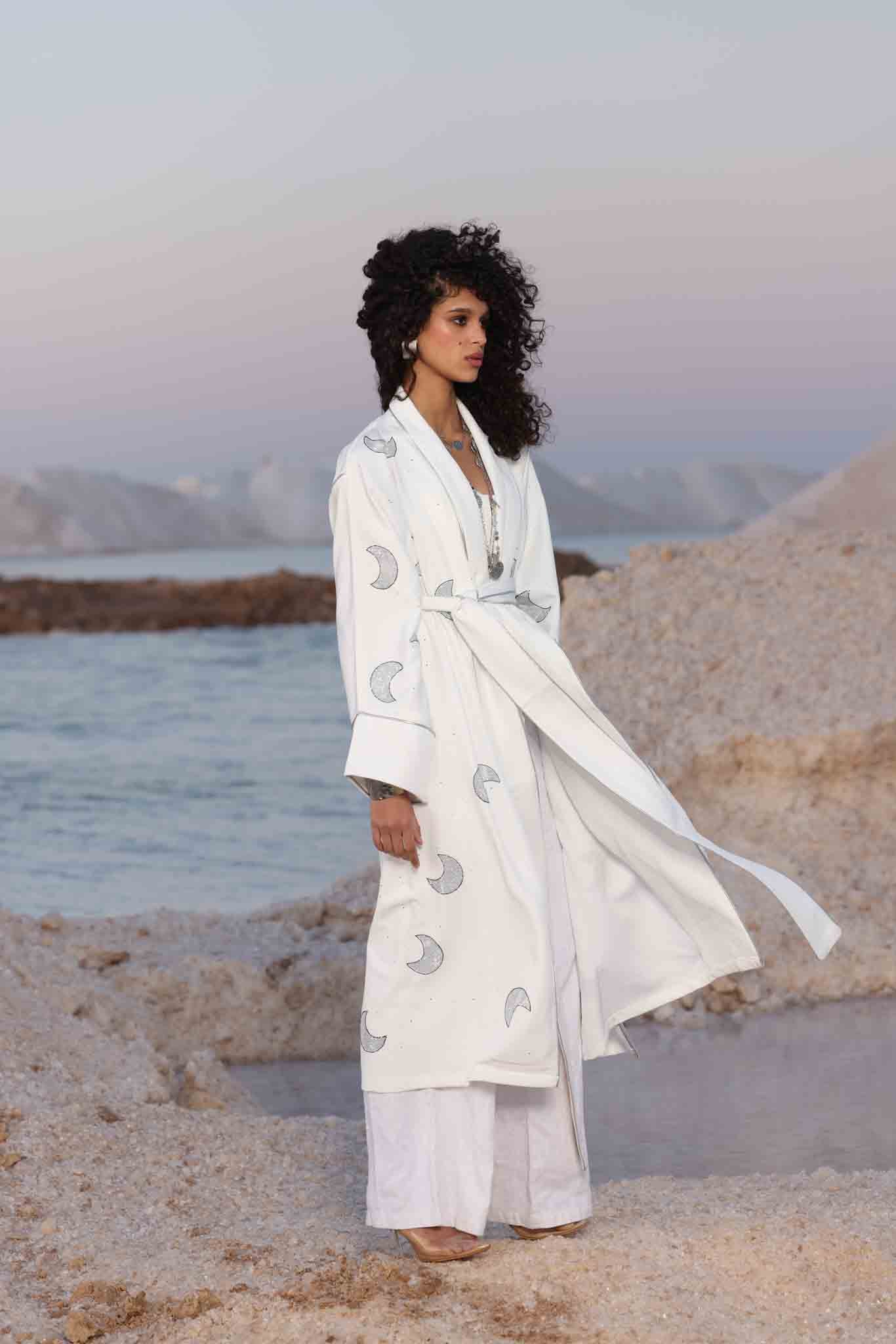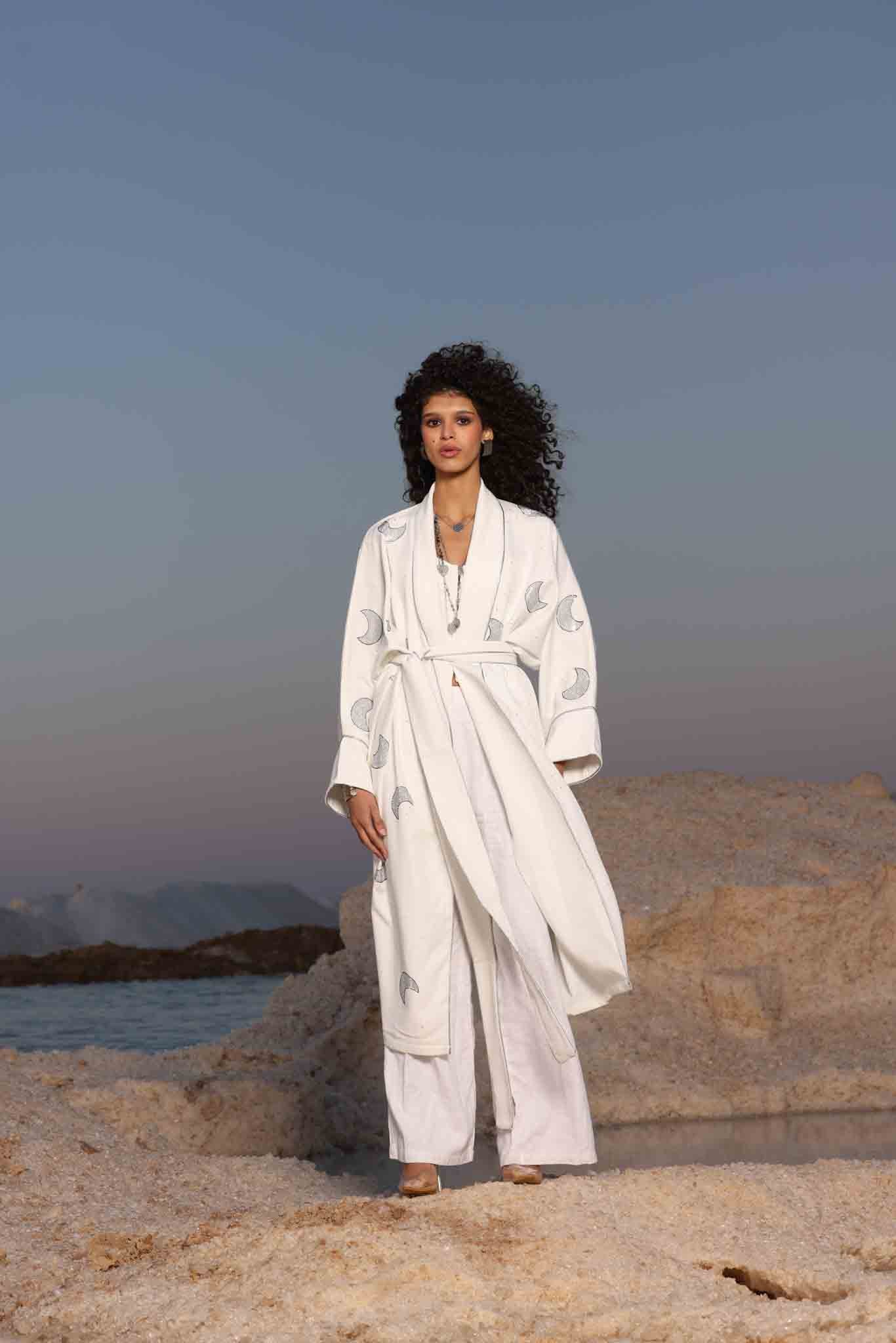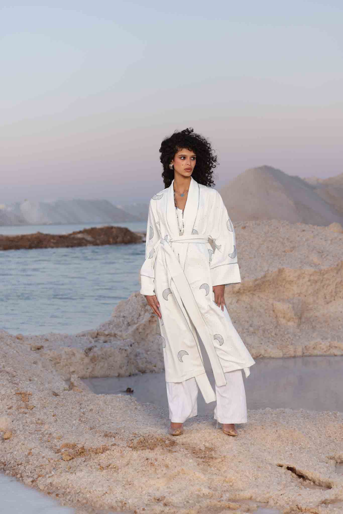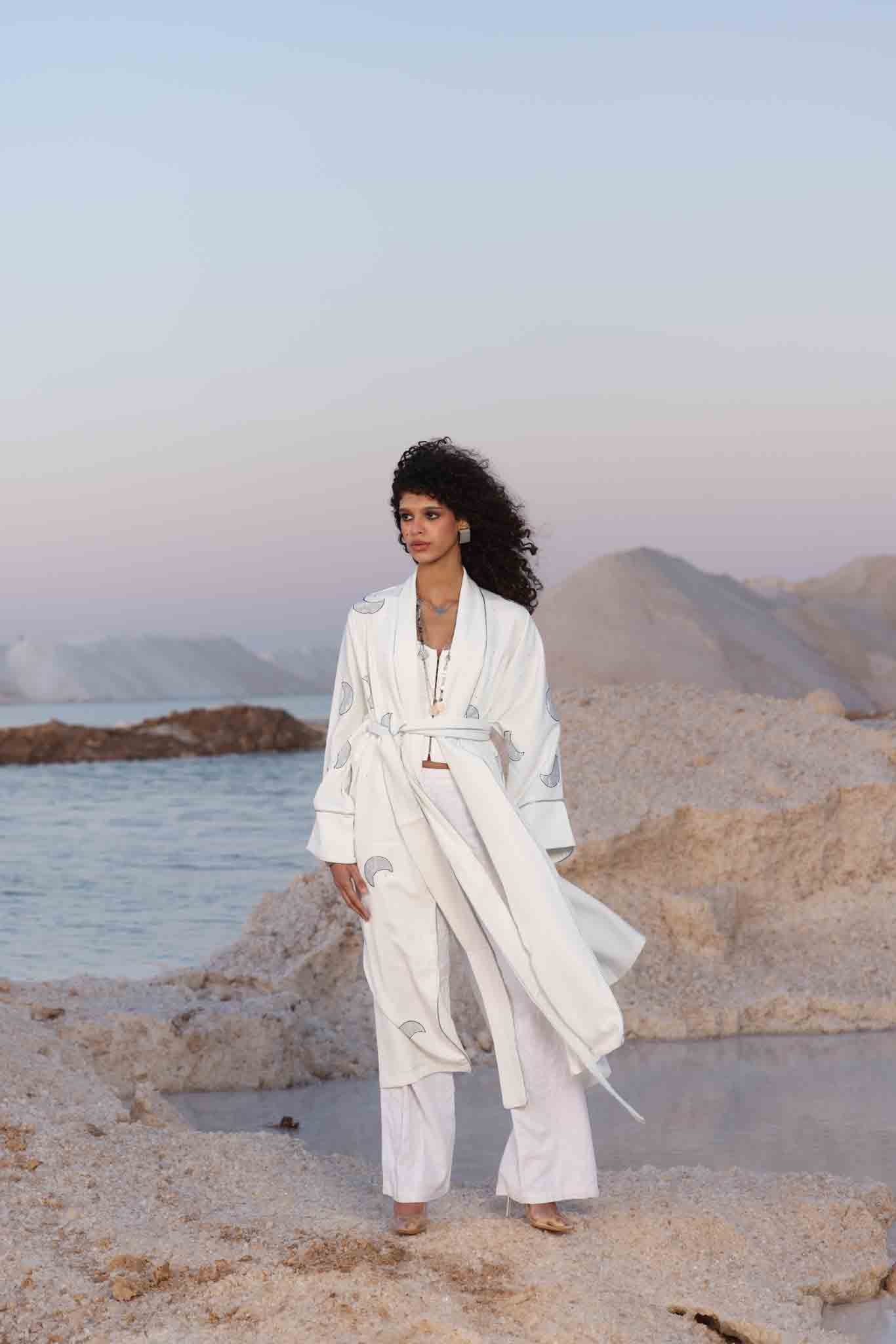 Introducing NABA - the embodiment of elegance and luxury. Our Ramadan Crescent Kaftan exudes sophistication with its intricate design and flowing silhouette. Embrace the spirit of the holy month in style and indulge in the ultimate comfort and exclusivity of NABA.