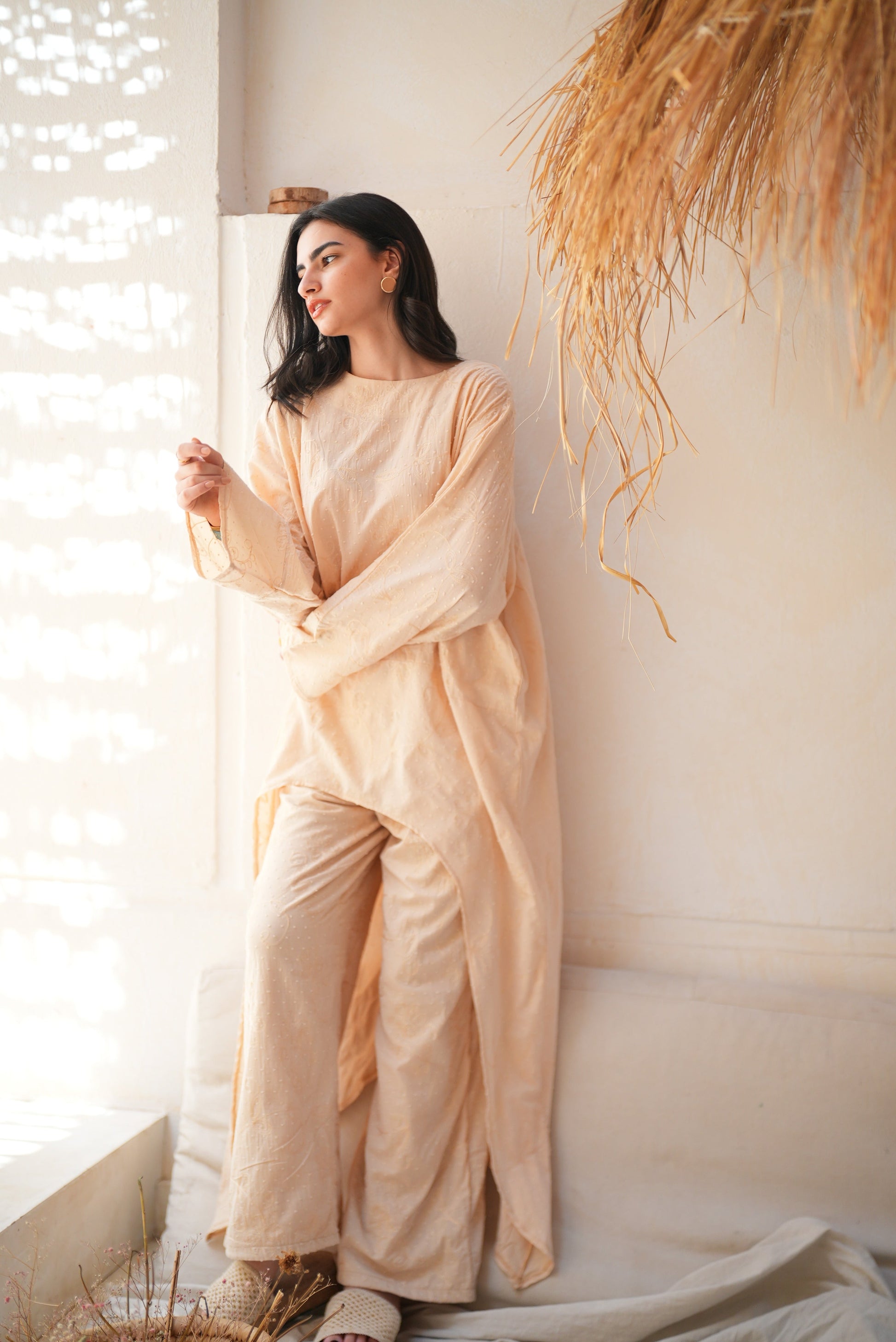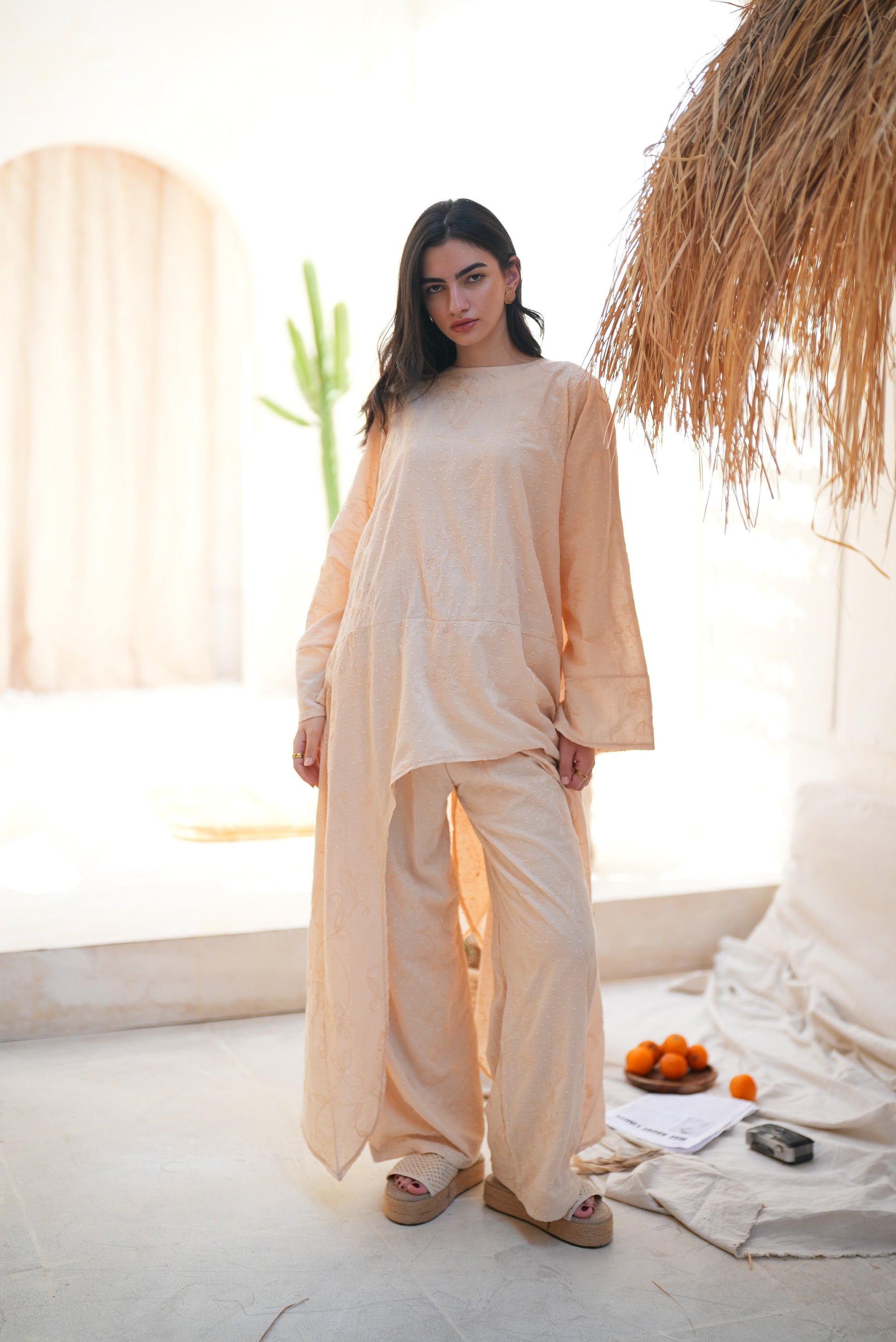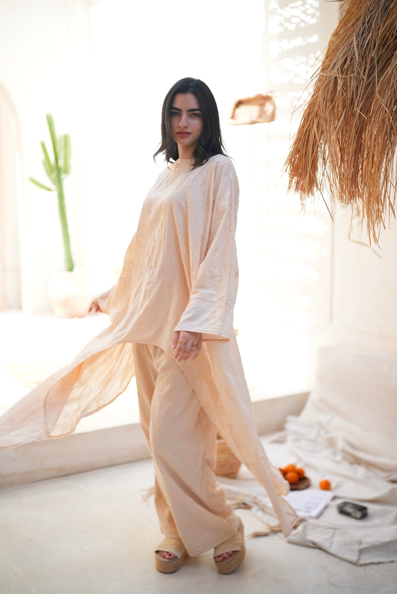Featuring relaxed-fit lined pants with dual pockets and an asymmetrical top that flows with elegance. The back steals the show with a statement design—perfect for making an impression from every angle