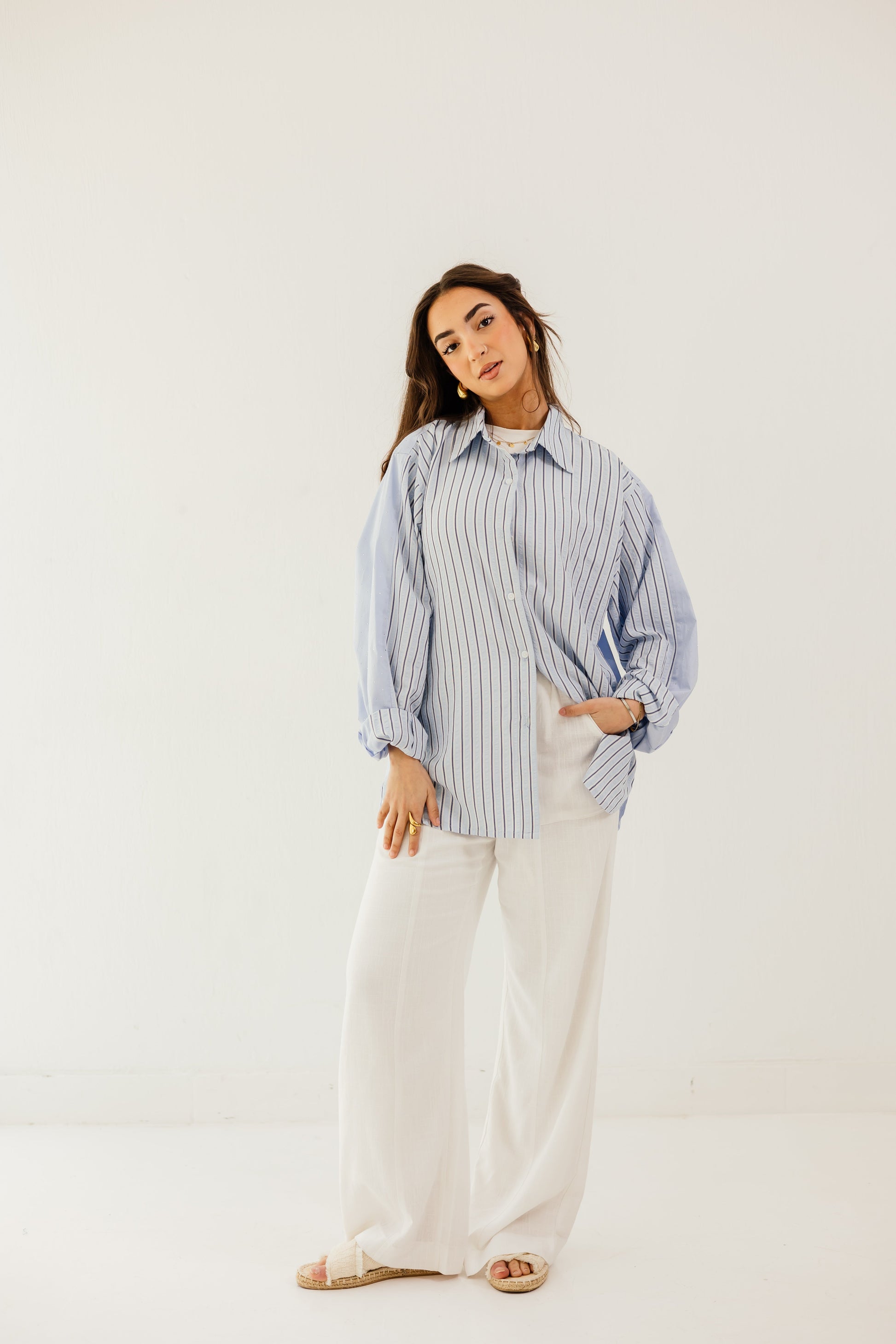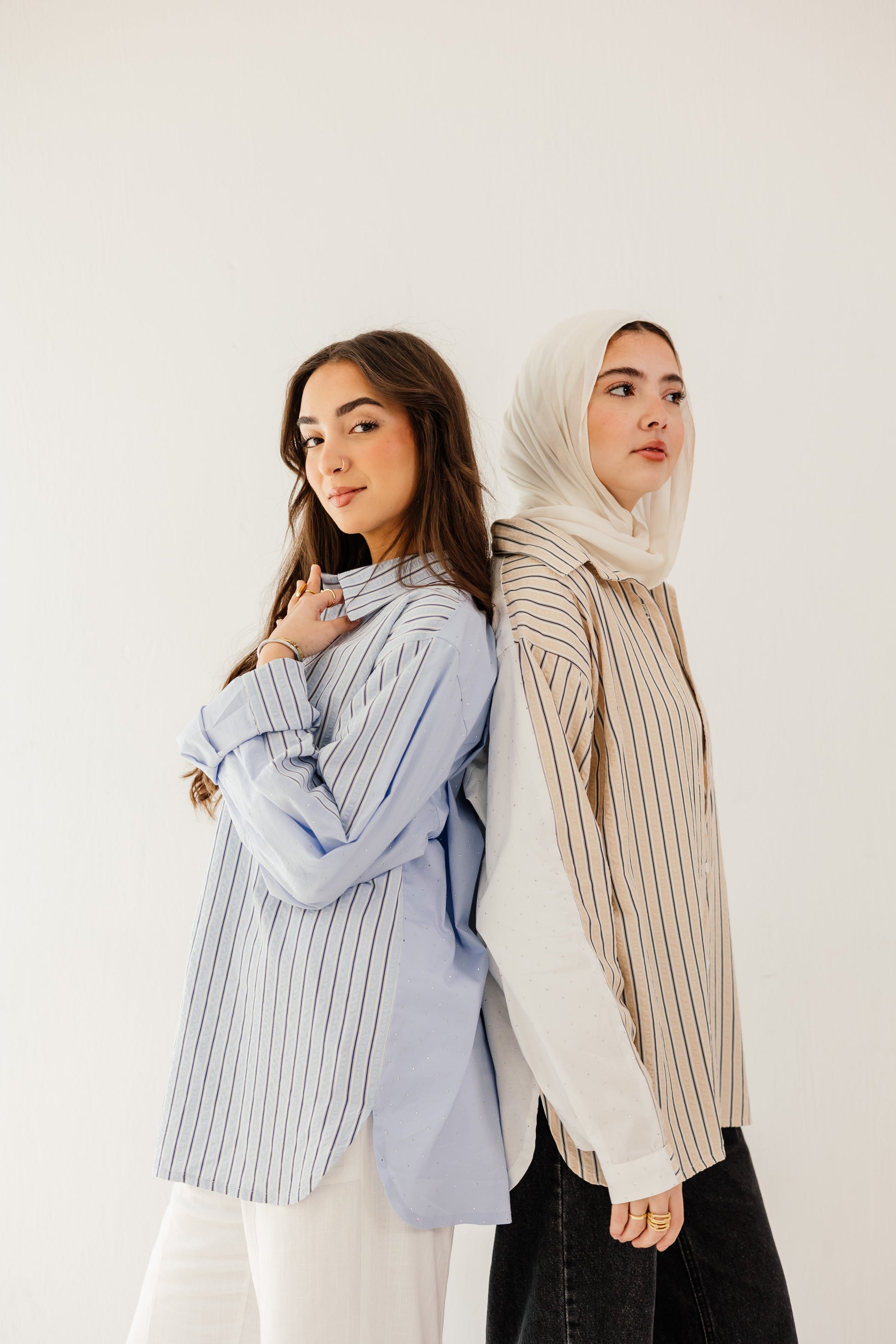 Stripe & Stud Shirt – A bold fusion of classic and edgy, the Stripe & Stud Shirt is designed for effortless style. Featuring a sleek striped front for a timeless look and a plain back adorned with metallic studs, this shirt balances sophistication with a touch of attitude. The lightweight fabric ensures comfort, while the unique contrast detail makes it a standout piece. Perfect for dressing up or down, this versatile shirt pairs seamlessly with jeans for a casual-chic look or tailored trousers for a more polished vibe.