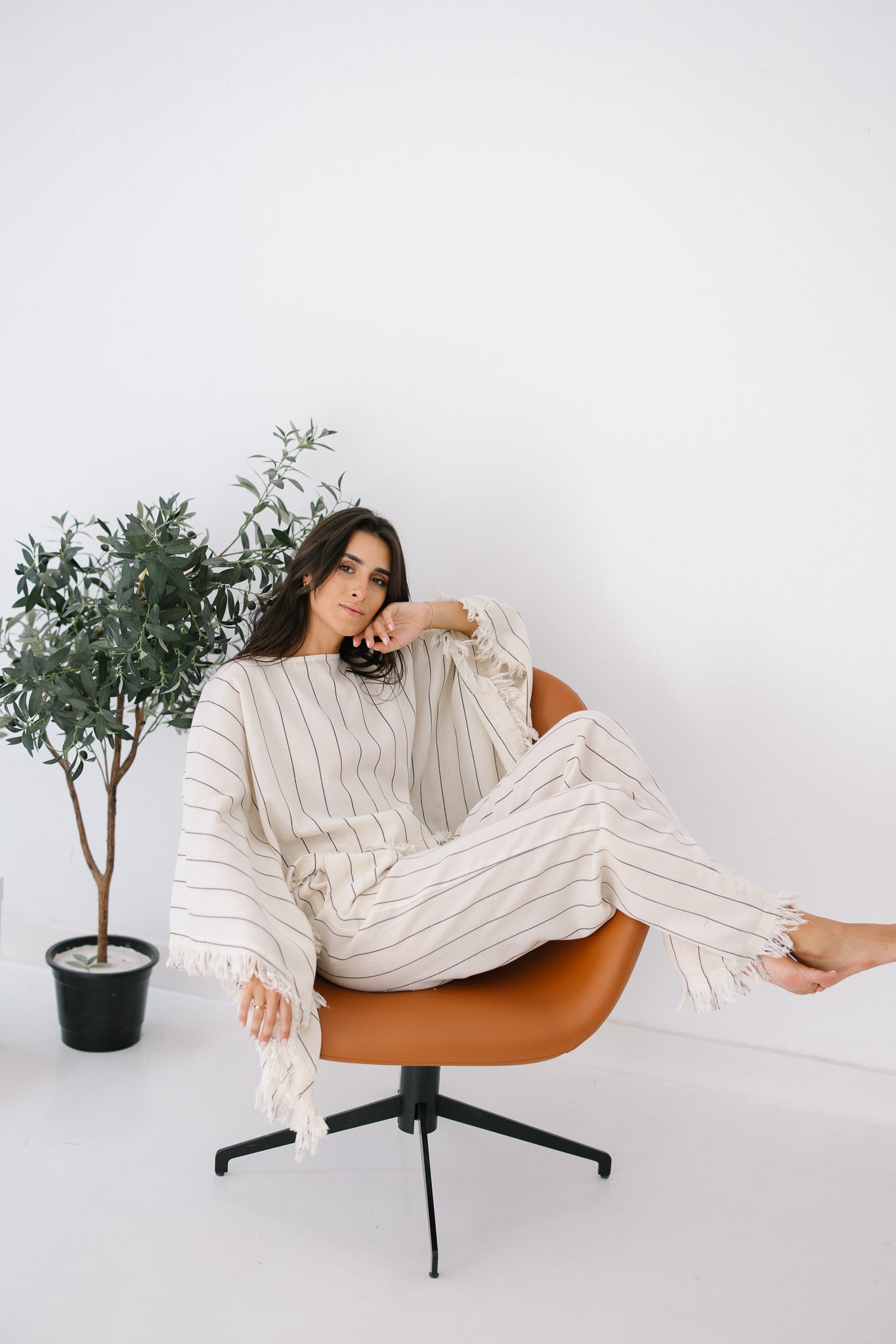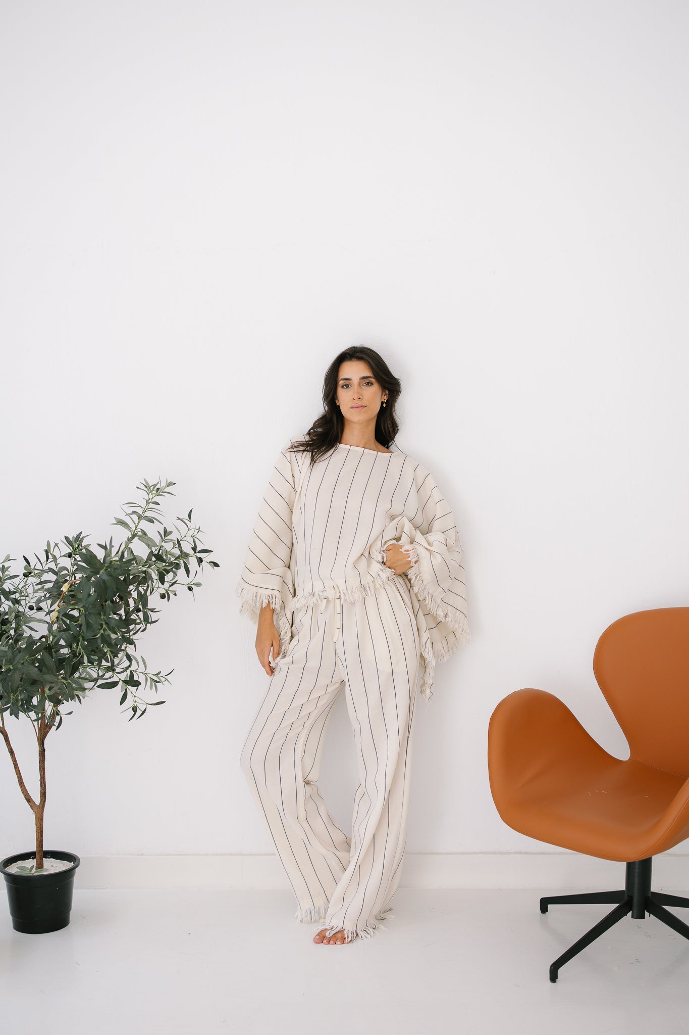 Get soaked in sunshine in this Sundrenched vibrant set. It has fringed end in the top and the pants.