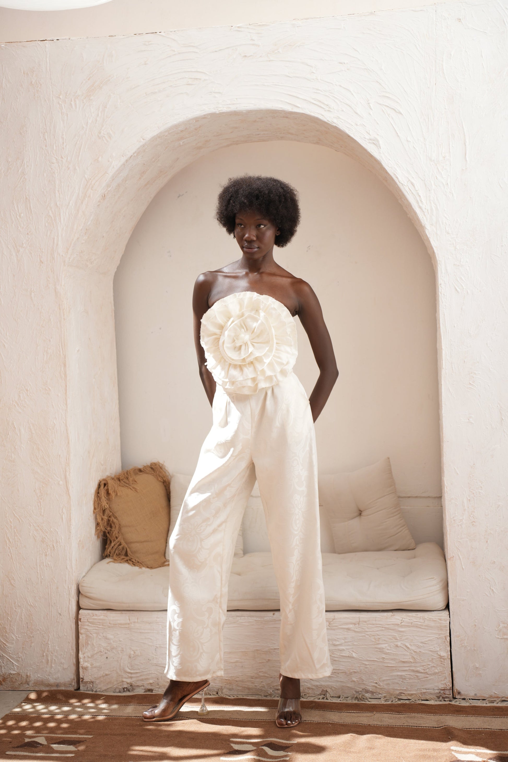 Complete your look with these statement pants, crafted to mirror the bold floral artistry of our signature flower top. With a tailored fit and standout pattern, these pants add movement and flair while staying effortlessly chic. Wear them together for a full bloom moment, or mix and match to let the details shine in every step.