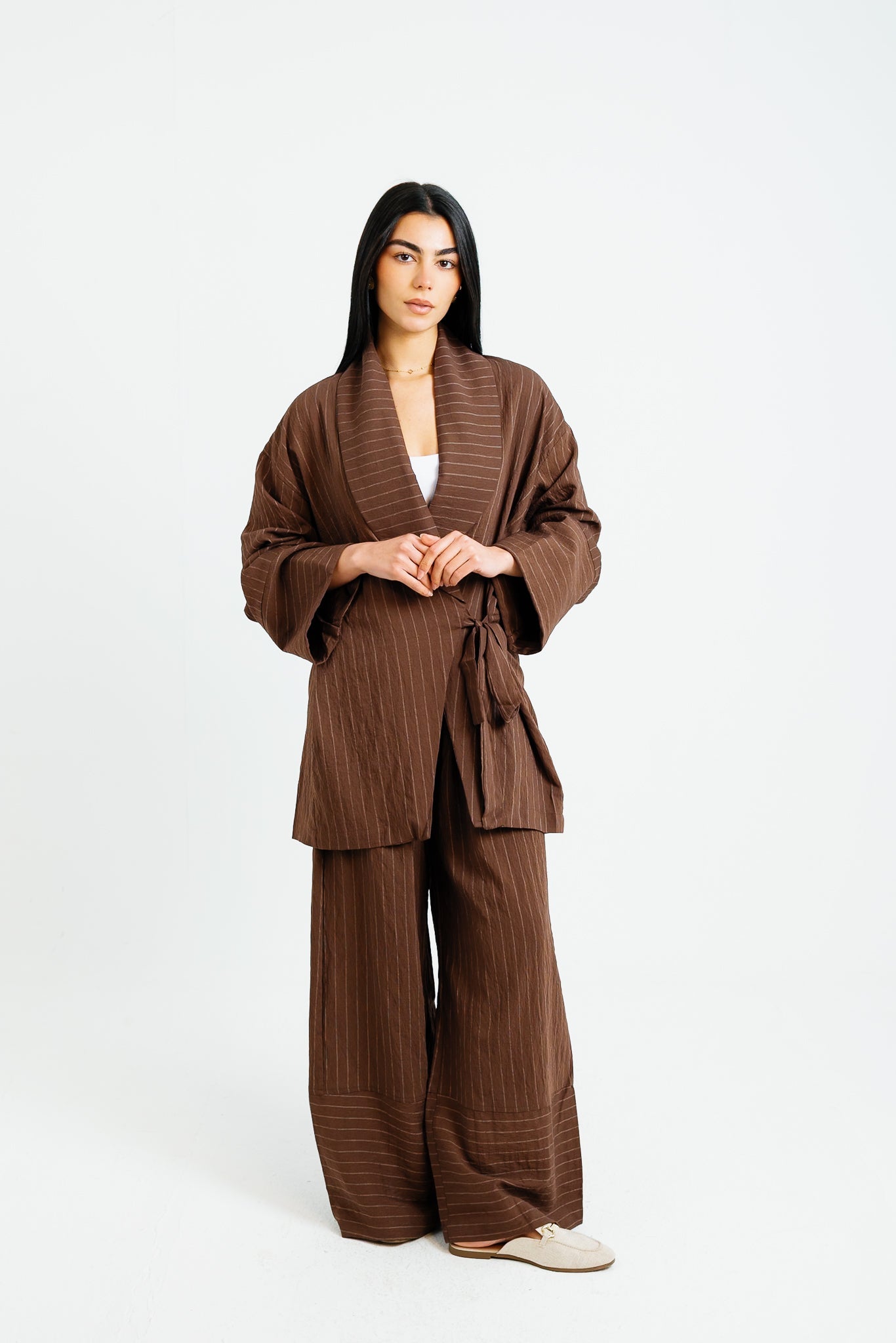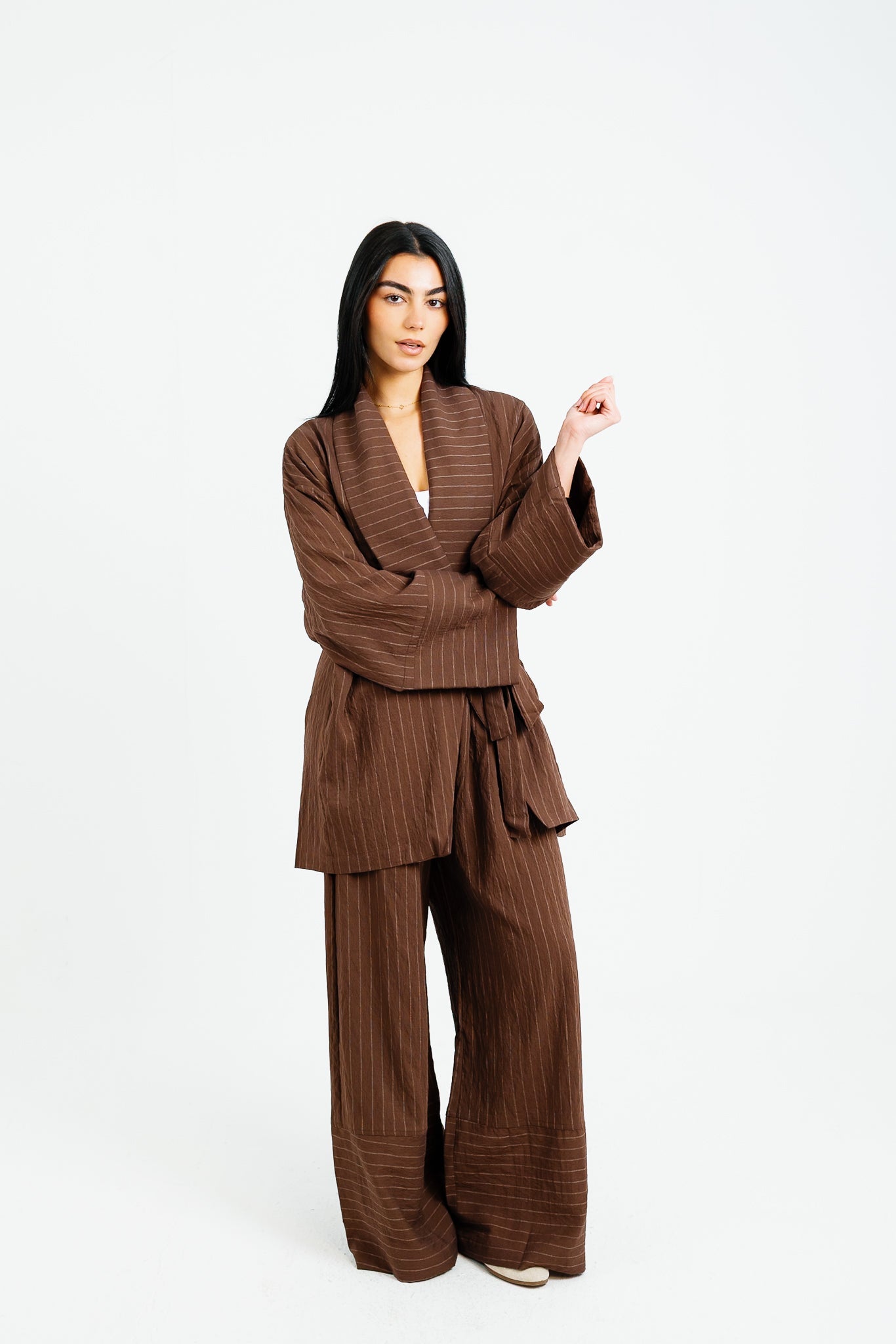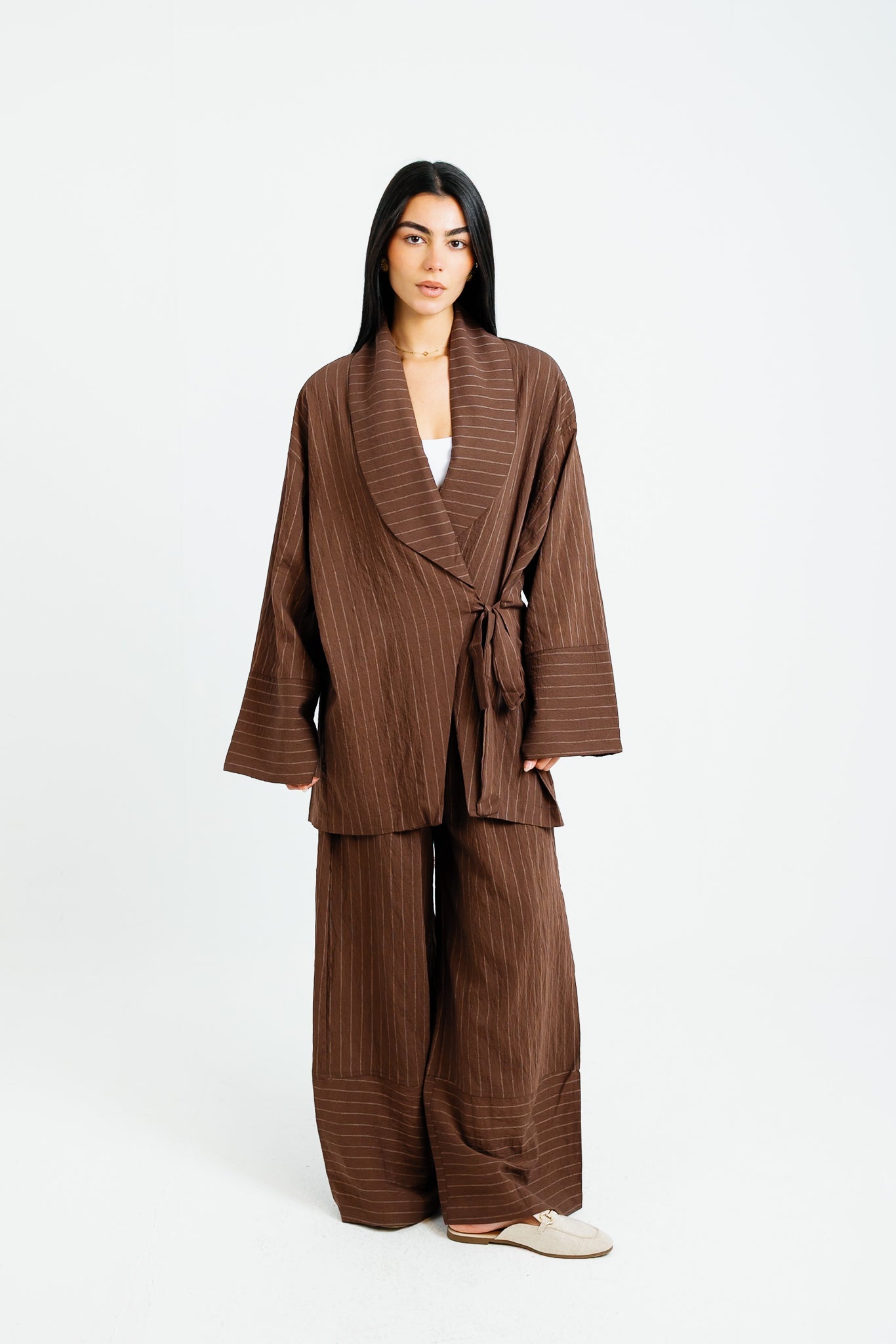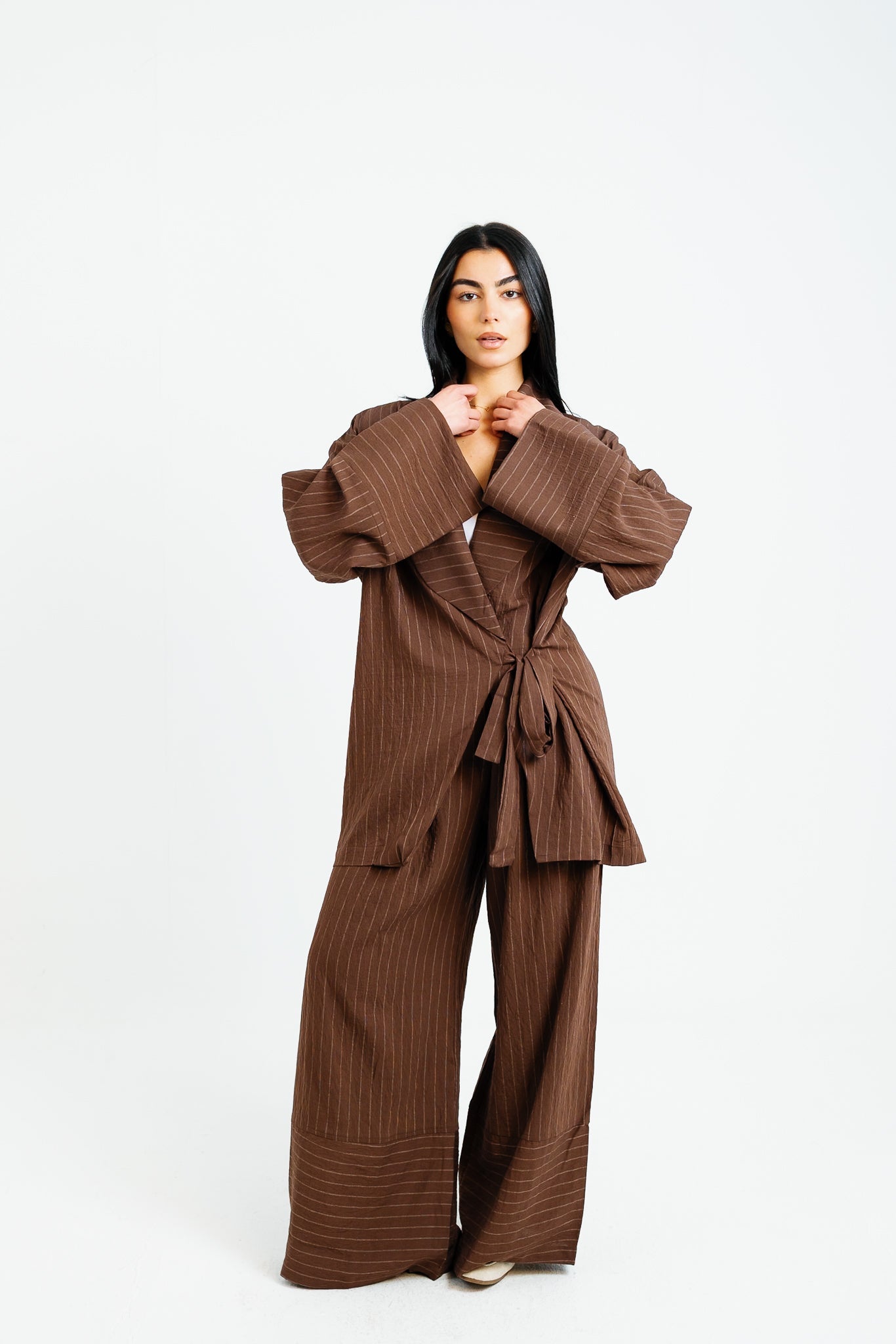 The Pinstripe Wrapped Set - Brown